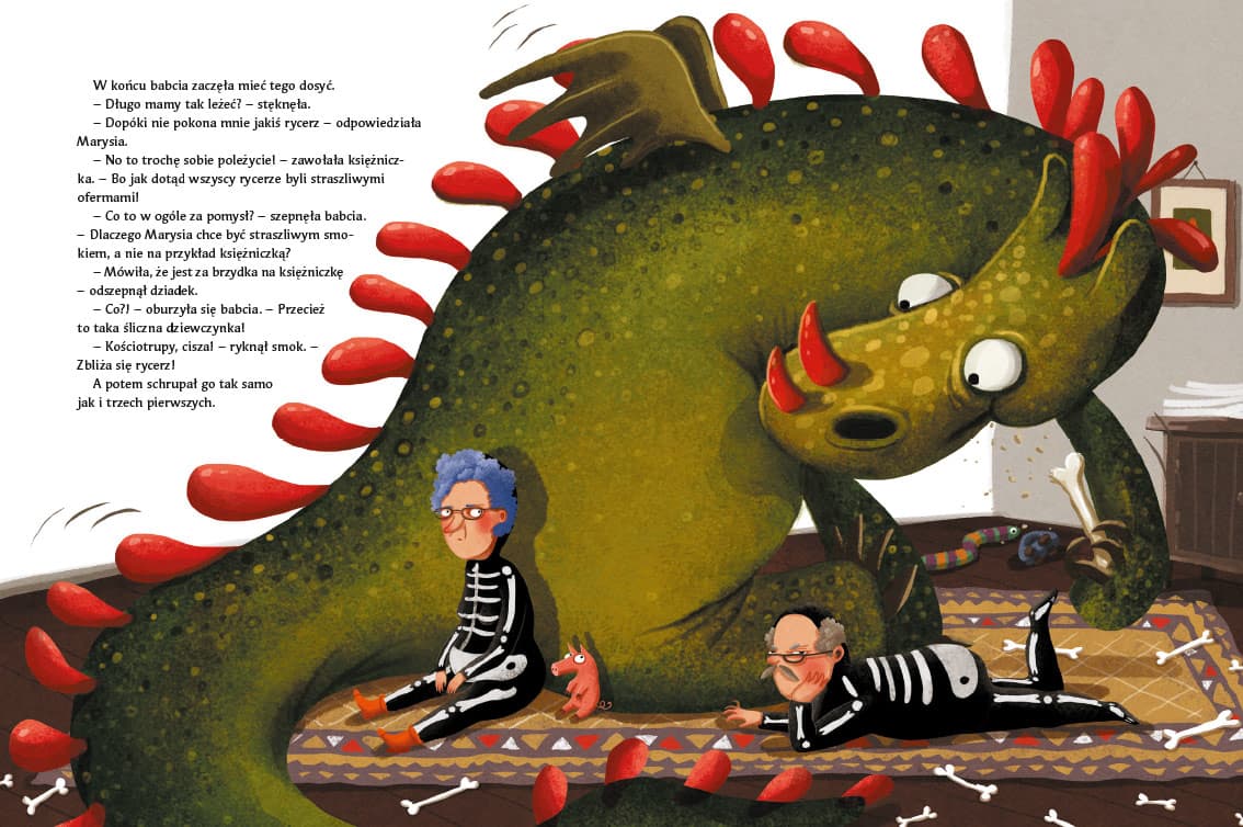 Kto by pomyślał, że mała dziewczynka o imieniu Marysia może być aż tak straszliwym smokiem! Na pewno nie jej mama. I tata też nie. Ani babcia. Jedynie dziadek miał pewne podejrzenia. Rezolutna Marysia sprawi, że w rodzinnym domu zapanuje niezłe zamieszanie... Zabawna i przewrotna opowieść o tym, że mądrość jest ważniejsza od urody i że zawsze warto być sobą!Szczegółowe informacje na temat książki A ja nie chcę być księżniczką