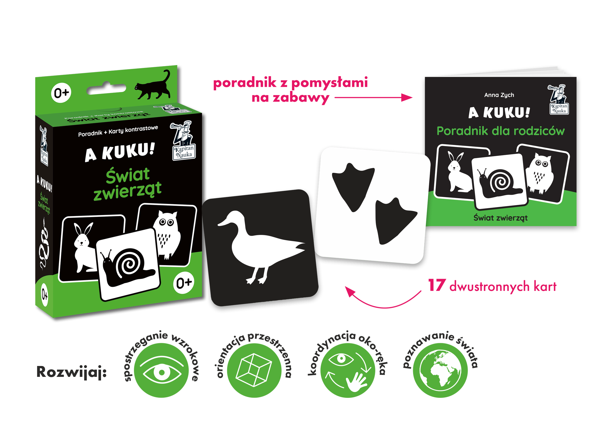 O książce A kuku! Świat zwierząt (Karty kontrastowe + poradnik). Kapitan Nauka