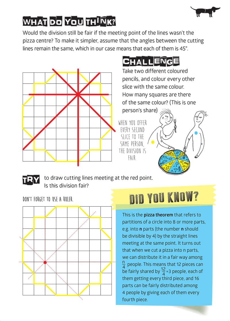 To książka rozrywkowa, zbiór zagadek, zadań i zagadnień, które uczą myślenia matematycznego w sposób zupełnie inny niż podręczniki szkolne. Jest ona także podróżą w świat logiki, wizytą na dworze królowej nauk, gdzie wyśmienici kucharze przygotowali dla Ciebie wspaniałą ucztę. Jestem przekonana, że spałaszujesz matematyczną pizzę ze smakiem, nie zostawiając nawet okruszków, za to w Twojej głowie na całe życie pozostaną wspaniałe wspomnienia i wiedza.