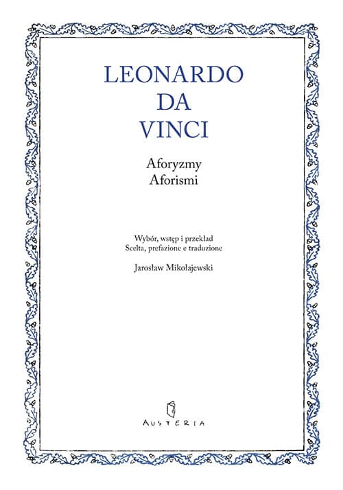 „Pisma Leonarda, strzeżone przez ucznia artysty Francesca Melzi, który został właś­cicielem brulionu, po śmierci ucznia były dzielone, wyprzedawane kartka za kartką, rozpraszane, zapominane. Podejmowane później, zwłaszcza od XVII wieku, poważne próby odtworzenia pisemnego korpusu pozwalają czytać je dzisiaj w poruszającym pięknie fragmentu. Mój wybór to maleńka cząstka całości, pozbawiona ambicji, by wyczerpać czy choćby nadgryźć obszerny ­kanon. (…) Jest w zdaniach Leonarda – tych, które mnie rozświetliły – szlachetna gnomiczność, niedokończoność, fragmentaryczność, czasem apodyktyczność prawdy oczywistej i absolutnej, uwolnionej od jakiegokolwiek wstydu, by prawdę tę wypowiedzieć. Jest – jak w zapisku o pragnieniu – nieoczekiwane uruchomienie całego życiowego doświadczenia obserwatora i naturalisty, służące wyrażeniu lirycznej, w dodatku zaskakującej myśli”. Jarosław Mikołajewski
