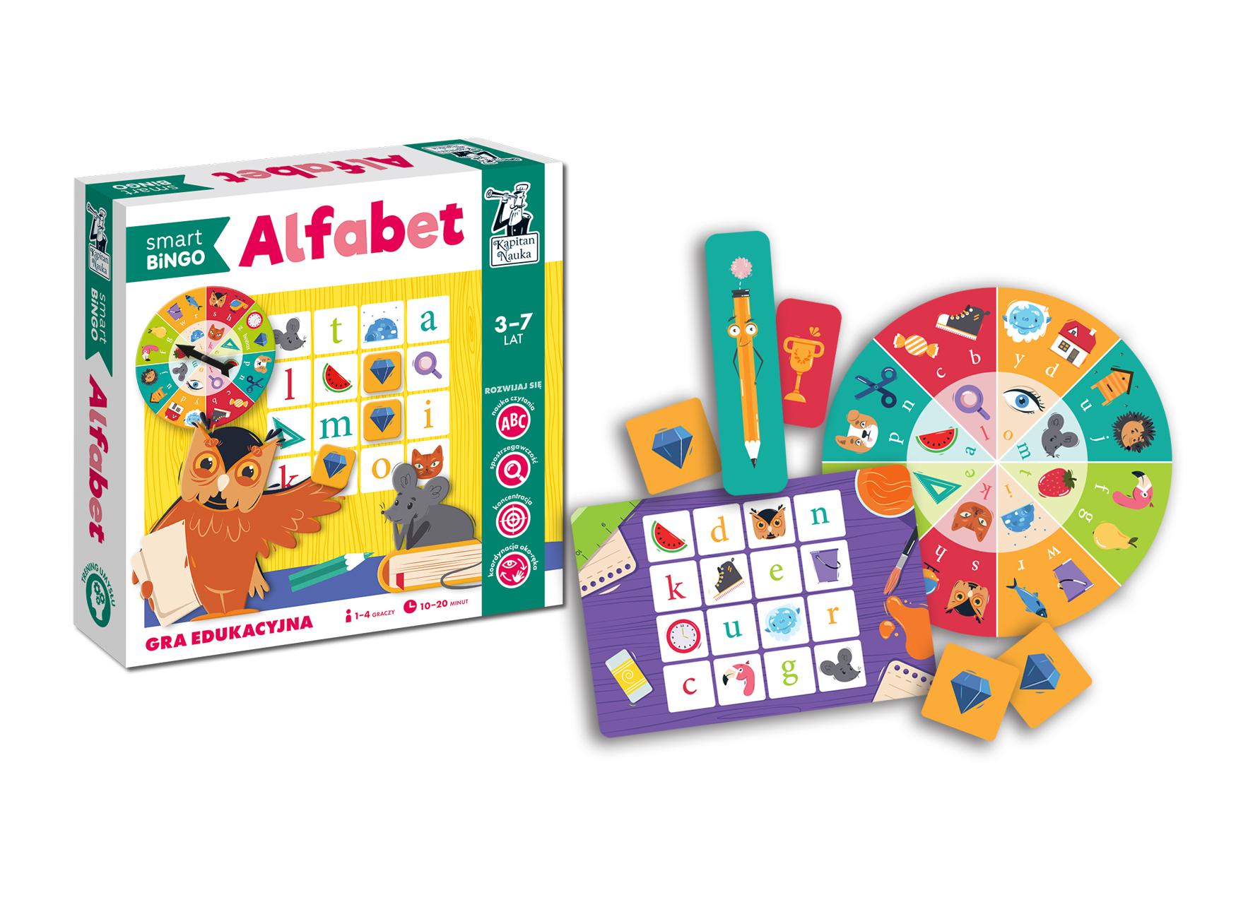 Szczegółowe informacje na temat gry Alfabet. Smart Bingo. Gra edukacyjna. Kapitan Nauka