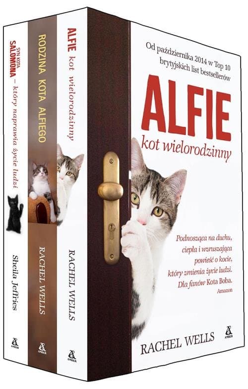 Ulubione „kocie” powieści Alfie, kot wielorodzinny „Podnosząca na duchu, ciepła i wzruszająca powieść o kocie, który zmienia życie ludzi”. AMAZON Na początku wszystko zapowiadało się tragicznie – opowiada kot Alfie. Jego Starsza Pani odeszła tam, gdzie ludzie odchodzą na zawsze. Alfie trafi ł na ulicę. W deszcz, zimno, między inne bezdomne koty i psy. Ze złamanym sercem musi walczyć, żeby przeżyć. Pewien życzliwy kot radzi mu, żeby został kotem „dochodzącym”: pomieszkiwał jednocześnie u kilku rodzin, bo to bezpieczniejsze niż jeden właściciel, któremu może się coś stać. I tak Alfie trafi a na Edgar Road, do czterech rodzin z problemami. One zajmują się kotem, a kot zajmuje się nimi. I ma pełne łapy roboty, by naprawić ich (i swoje) życie. Rodzina kota Alfiego Ciąg dalszy bestsellera Alfie, kot wielorodzinny Na Edgar Road wprowadza się kolejna rodzina. I tak jak wiele innych, potrzebują pomocy Alfiego. Czy mądry kot będzie potrafił rozjaśnić ich życie? Czy jest już za późno, żeby utrzymać rodzinę razem? Syn kota Salomona „Niosąca nadzieję powieść o magicznej sile kociego mruczenia i uzdrawiającej potędze miłości”. AMAZON.UK Timba jest synem Salomona, kota, który leczy dusze. Ma zaledwie sześć tygodni, gdy zostaje porzucony. Przerażonego, zziębniętego, głodnego kotka znajduje Leroy, mały chłopiec, bardzo samotny i nieszczęśliwy. Timba chce być jego przyjacielem, ale Leroy nie potrafi postępować z małym kociakiem... Timba poznaje Angie, młodą nauczycielkę Leroya. Między nimi tworzy się szczególna więź. Czy Timba pomoże Angie przetrwać złe chwile, które do niej przyjdą? Czy odnajdzie swojego brata Vati i razem użyją kocich mocy, by uzdrowić życie ludzi, których kochają?