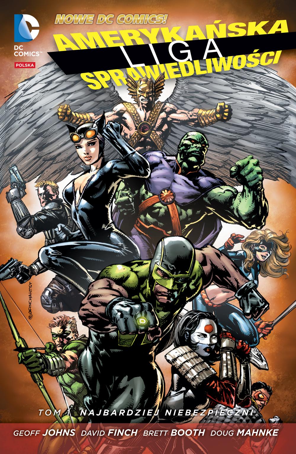 "Przed pięcioma laty najwięksi ziemscy superbohaterowie założyli Ligę Sprawiedliwości, by wspólnie chronić ludzkość przed knowaniami złowrogich istot pragnących przejąć władzę nad światem. Lecz jeśli kiedykolwiek z jakichś powodów te niemal boskie istoty zwrócą się przeciwko ludziom, czy ktoś zdoła stawić im czoła? By stworzyć kontrolowaną przez władze przeciwwagę dla Ligi Sprawiedliwości, tajni funkcjonariusze w mrocznych korytarzach rządowych agencji pracują nad powołaniem nowego zespołu – Amerykańskiej Ligi Sprawiedliwości. Marsjański Łowca Ludzi, Catwoman, Hawkman, Green Arrow, Vibe, Katana, Star Girl, Green Lantern. Niektórzy z nich są niedoświadczeni, niektórzy – mało solidni, inni to zwyczajni przestępcy. Dla opinii publicznej ci bohaterowie są obrońcami Stanów Zjednoczonych przed najgorszymi złoczyńcami. Ich prawdziwym celem jest unieszkodliwienie członków Ligi Sprawiedliwości w sytuacji, gdyby ci zeszli na złą drogę. Tymczasem zbliżają się dużo poważniejsze zagrożenia. Powstaje tajne stowarzyszenie najgroźniejszych przestępców. I jeśli członkowie drużyny najbardziej niebezpiecznych nie będą ostrożniejsi, mogą nie dotrwać do momentu konfrontacji z Ligą Sprawiedliwości. Geoff Johns (Liga Sprawiedliwości), David Finch (Batman – Mroczny Rycerz) i Brett Booth (Młodzi Tytani) przedstawiają trzymającą w napięciu historię powstania nowej drużyny superbohaterów! "