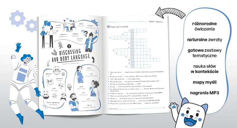 - różnorodne ćwiczenia, dzięki którym poznajesz nowe słowa, wyrażenia i idiomy na poziomie B1
