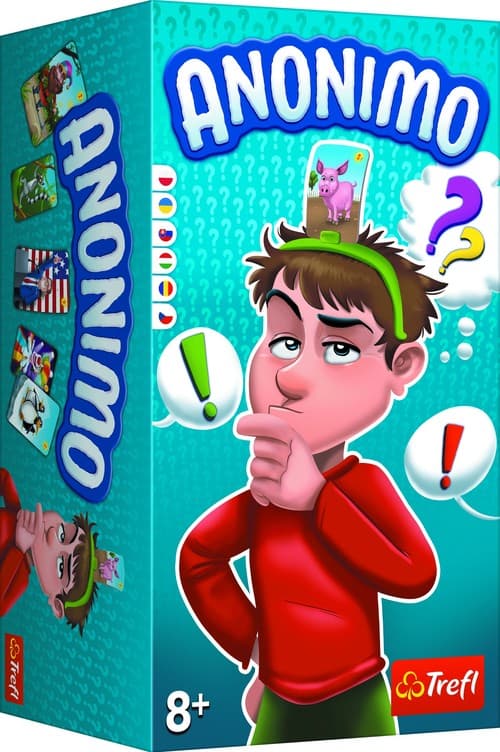 Zgadnij, kim jesteś! W grze Anonimo gracze próbują odgadnąć hasła umieszczone w opaskach na ich głowach. Zakręć kołem i sprawdź, jakie dodatkowe zasady czekają na Was w tej rundzie. Zawartość pudełka 56 dwustronnie ilustrowanych kart z hasłami 4 opaski na głowę z uchwytami strzałka i spinner do losowania podpowiedzi 24 żetony punktów 6 kafelków specjalnych instrukcja Wiek graczy:8+ Liczba graczy: 3-4 Czas rozgrywki: 20-30 minut