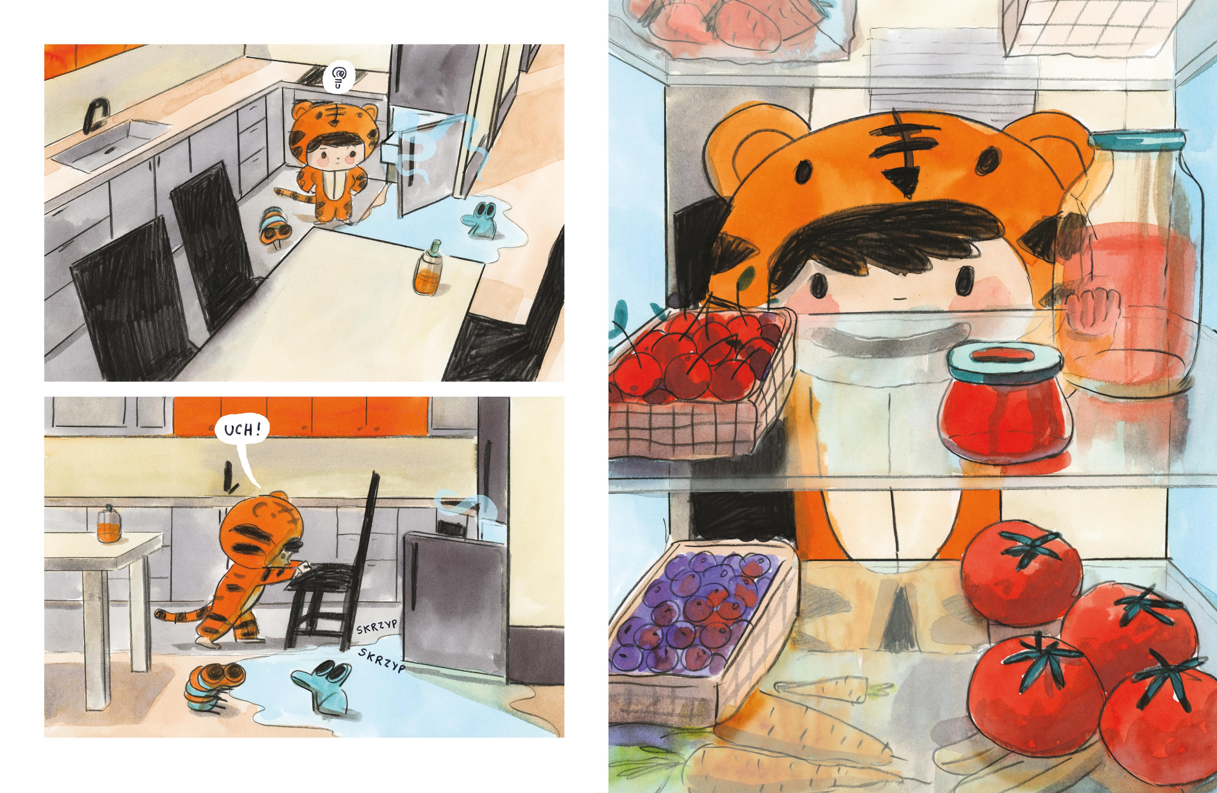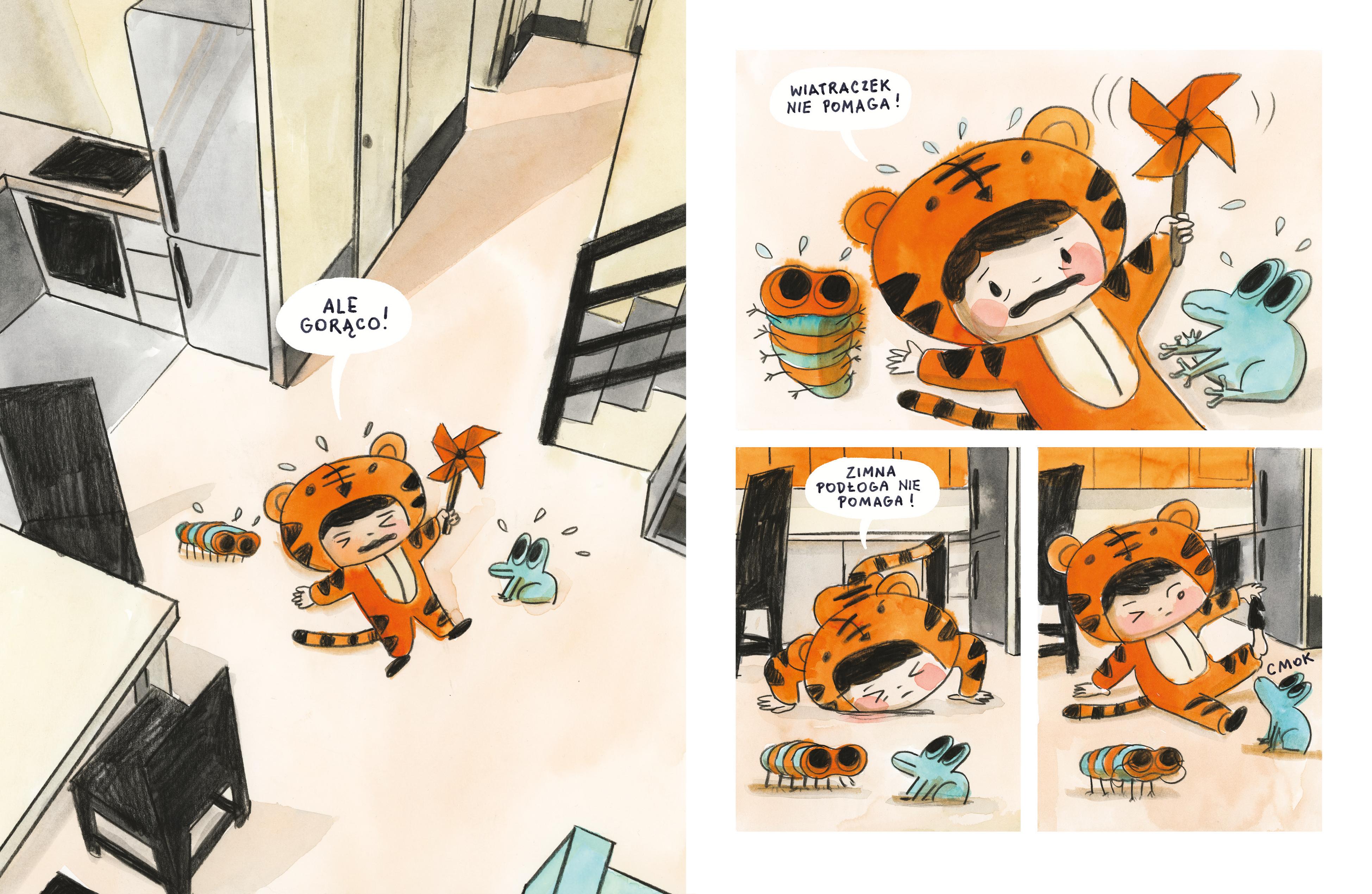 Jest bardzo gorąco. Jak się ochłodzić, gdy nie działają żadne sposoby? Ani wiatraczek, ani... Uff, na szczęście w kuchni Mika poznaje Chłodka. Czy dziewczynce uda się zorganizować piknik dla przyjaciół i umilić im upalny dzień? Czy Chłodek im pomoże? „Mika i Chłodek" to kolejny komiks dla najmłodszych z serii o Mice - rezolutnej, pomysłowej i ciekawskiej dziewczynce, odważnie badającej najbliższe otoczenie. W „Mice i Wyjcu" Mika ratuje skarpetki z paszczy huczącego domostwora, a w „Mice i Bulgocie"– ukochaną żabkę z brzucha... wiadomo... Bulgota, który rezyduje w domowej pralni. Teraz zaprzyjaźnia się z Chłodkiem. Świat za progiem własnego pokoju jest bowiem pełen niespodzianek i dziwnych sprzętów, a właściwie domostworów. Warto wiedzieć, kto jest kim. Komiks dla najmłodszych czytelników, do oglądania, opowiadania linearnej historii, rozwijający wyobraźnię.