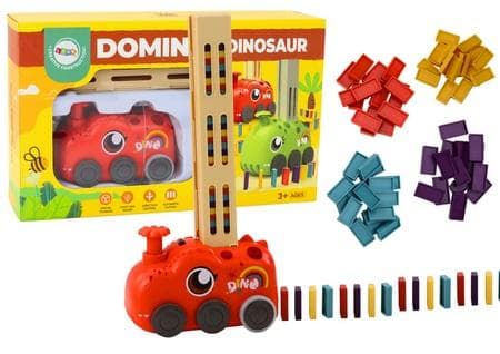 Auto czerwony dinozaur na baterie układające domin Gra