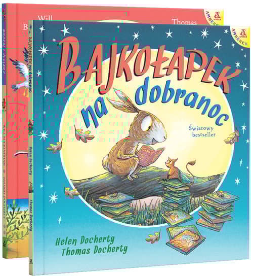 Dwa bestsellery AMBERKA - teraz w pakiecie! BAJKOŁAPEK NA DOBRANOC Uroczy i zabawny, pełen przygód, pięknie ilustrowany i rymowany światowy bestseller autorów książek wydawanych w 26 językach: "Rycerz, który nie chciał walczyć" i "Abrakazebra". Poznajemy radość czytania z Bajkołapkiem, który na bajki miał wielką chrapkę. W każdym domu na dobranoc książki dzieciom wciąż czytano... Pewnego dnia książeczki z bajkami zaczynają znikać. Co się dzieje? Dzielny zajączek postanawia rozwiązać tę zagadkę. • Wspaniała zachęta do czytania – nie tylko na dobranoc – w oryginalnej, zabawnej opowieści. • Książki małżeńskiej pary twórców pokazują, jak wielka jest moc bajek i opowieści. Uczą wzajemnego szacunku, akceptacji innych i pokazują siłę życzliwej przyjaźni. MRUKOL I ŻEGLARZ Wzruszająca, zabawna, pięknie ilustrowana przez twórcę m.in. "Bajkołapka na dobranoc" opowieść o niezwykłej przyjaźni. Zachęca do nawiązywania kontaktów i dzielenia się z innymi. Pokazuje, jak wielką daje to radość i jak pomaga przezwyciężyć lęk przed nieznanym. Mrukole lubią być same i mieć wszystko dla siebie. Mrukole nie przyjmują gości. I Mrukole przede wszystkim nie znają i nie chcą zaznać przygód. Ale pewnego wieczora PUK! PUK! PUK! – u drzwi Mrukola staje niespodziewany przemoczony gość. To Żeglarz, który chce schronić się, ogrzać i pożywić. I opowiedzieć o swoich niezwykłych przygodach. Czy życie Mrukola zmieni się tak, jak nigdy nawet nie umiał i nie śmiał marzyć? Czy Mrukol odważy się wyruszyć z domu w poszukiwaniu przygód? • Ta książka zachęca do nawiązywania kontaktów i dzielenia się z innymi. • Pokazuje, jak wielką radość daje przyjaźń i jak pomaga przezwyciężyć lęk przed nieznanym.