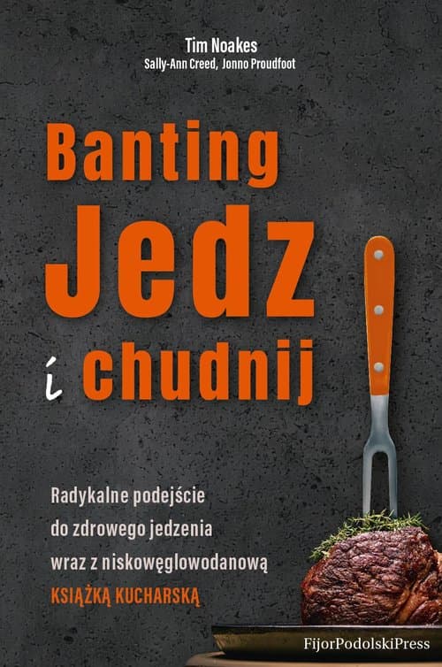 Tim Noakes, Sally-Ann Creed, Jonno Proudfooot Banting. Jedz i chudnij Mimo iż rewolucja żywieniowa polegająca na zwiększeniu konsumpcji tłuszczu i mięsa, kosztem redukcji węglowodanów jest od półwiecza coraz popularniejsza, a nawet modna, najbardziej znaczące książki na jej temat: „Rewolucja dietetyczna” Dr. Roberta C. Atkinsa, „Żywienie optymalne” dr. Jana Kwaśniewskiego, czy „Sztuka i nauka żywienia niskowęglowodanowego” Stephena Phinneya oraz Jeffa Voleka nie odpowiedziały na rodzące się wraz z nią pytania. Niedosyt wiedzy sprawił, że przebudowę piramidy żywieniowej i nawoływania do powrotu do życiodajnego sposobu odżywania ludzi traktuje się wciąż jako kwestię kaprysu, mody, przewrotnego stylu życia, działań grup interesów, czy wręcz dzieło domorosłych znachorów. Dopiero około 35 lat temu profesor medycyny sportowej Tim Noakes z RPA, pomysłodawca i współautor książki Banting. Jedz i chudnij, zagorzały zwolennik paradygmatu „zdrowego” odżywiania opartego na węglowodanach i unikaniu produktów zwierzęcych, badając problemy metabolizmu biegaczy ultramaratonów odkrył, że dotychczasowy sposób żywienia to błąd. Równocześnie odpowiedział na kluczowe pytania Bantingu: Skąd wiadomo, że węglowodany są dla człowieka szkodliwe? A jednocześnie dlaczego tłuszcze zwierzęce i mięso są dla organizmu ludzkiego pożyteczne? Jaka jest natura uczucia głodu? Dlaczego i kiedy człowiek tyje? I dlaczego tak trudno jest schudnąć? Czy wysoki cholesterol zabija? Dlaczego otyłość jest taka groźna? Dlaczego, pomimo rozwoju farmacji i wzrostu poziomu życia ludzi rośnie liczba zachorowań na tzw. choroby cywilizacyjne? Wiele z nich nie ma charakteru intuicyjnego i aby na nie odpowiedzieć, konieczne było przebadanie ostatnich 200 tysięcy lat dziejów gatunku ludzkiego i wiele innych faktów naukowych. Wyniki tych badań znajdziecie Państwo w Banting. Jedz i chudnij. Ilustracją diety jest zbudowana na tych odkryciach, książka kucharska, która pomoże okiełznać te skłonności natury ludzkiej, które utrudniają człowiekowi trzymanie się wskazań rozsądku. Mimo iż wyjaśniona w Banting. Jedz i chudnij dieta jest racjonalna i naturalna, wymaga rezygnacji z pewnych dotychczasowych przyzwyczajeń. Skrupulatnie dobrana przez profesjonalną dietetyk Ann Creed i szefa kuchni Jonno Proudfoota zawiera prawie 100 różnorodnych, smacznych i zdrowych potraw, dobranych tak, by dieta się nie nudziła, była łatwa do spożycia, a w razie potrzeby można ją było łatwo zmodyfikować w ramach lokalnych ograniczeń dostępu do składników. Banting. Jedz i chudnij umożliwi bez (niemal) żadnych wyrzeczeń utrzymać upragnioną wagę, zachować dobre zdrowie, trzymać się z dala od służby zdrowia, a jednocześnie jeść co się chce i ile się chce bez ciągłego kontrolowania kalorii.