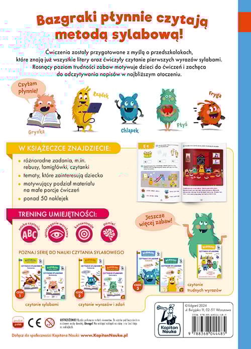 Szczegółowe informacje na temat książki Bazgraki czytają trudne wyrazy. Czytanie sylabowe. Ćwiczenia. Kapitan Nauka. Bazgraki