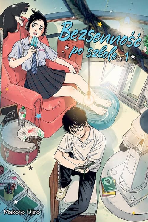 Zgodnie ze statystykami z 2021 r., bezsenność dotyka około 10% światowej populacji. Nie jest to zatem wcale taka drobnostka jak wiele osób mogłoby się tego spodziewać. Zapewne w większości przypadków bezsenności ktoś powie wam żebyście nie pili dużo kawy i nie wpatrywali się w ekran telefonu tuż przed próbą zaśnięcia. Prawda jest jednak taka, że bezsenność to skomplikowany przypadek, który może mieć różne podłoża. W oryginalny i ciekawy sposób ten temat porusza Makoto Ojiro w mandze Bezsenność po szkole.O tytule, który w 2023 r. zaczął ukazywać się w Polsce nakładem wydawnictwa Kotori, mogliście już słyszeć. W zeszłym roku doczekał się on animowanej adaptacji, o której słów kilka znajdziecie tutaj. Nie bez powodu ta manga cieszyła (historia została zamknięta w 13 tomach) i wciąż cieszy się niezwykłą popularnością, o czym chciałbym wam dzisiaj co nieco powiedzieć.Na rozkład bierzemy pierwszy tom tej niezwykle urokliwej, ale także pouczającej historii. Bezsenność po szkole koncentruje się na losach dwójki uczniów liceum. Pierwszym bohaterem, którego poznajemy jest Ganta Nakami, zgryźliwy, trzymający większość rówieśników na dystans, ale inteligentny nastolatek. W pierwszej chwili mogłoby się wydawać, że ma pewne problemy z charakterem, ale wkrótce dowiadujemy się, że wpływ ma na to właśnie bezsenność.W dość nieoczekiwanych okolicznościach chłopak poznaje drugą bohaterkę tej historii. Jest nią Isaki Magari. Jest ona w zasadzie przeciwieństwem tego nastolatka - pełna energii, humoru i pozytywnie nastawiona do otoczenia. Pozory potrafią jednak mylić i ona również walczy z bezsennością. Dwójkę połączyło zamknięte obserwatorium, znajdujące się w liceum, a które oboje uznali za niezłą miejscówkę na oddanie się zasłużonemu snu. Tylko, czy będą ze sobą współpracować? I jak zareaguje na to szkoła, jeśli informacja o takim wykorzystaniu obserwatorium wyjdzie na jaw?Część odpowiedzi na powyższe pytania otrzymujemy właśnie w pierwszym tomie mangi. Tym co jako pierwsze rzuciło mi się w oczy było bardzo wiarygodne przedstawienie zachowania naszych bohaterów, mających deficyt snu. Na pewno większość z was wie jak to jest, gdy z różnych powodów nie możemy zasnąć i z czym to się może wiązać. Bóle głowy, zmiany nastroju, zmęczenie i nerwowość, to niektóre ze skutków, o których autorka opowiada w pierwszych rozdziałach.Dużym plusem jest sam fakt, że pomimo podobnych problemów, Ganta i Isaki bardzo się od siebie różnią. Nie jest tak, że od razu się ze sobą zgadzają i są najserdeczniejszymi przyjaciółmi. To sprawia, że zawiązująca się między nimi relacja staje się dla czytelnika interesująca. Co do powodów bezsenności, autorka nie zdradza nam ich jeszcze, ale delikatnie daje nam do zrozumienia, że są związane z przeszłością wspomnianych nastolatków.Ten pierwszy tom mangi w ogóle bardzo fajnie odsłania przed nami świat nastolatków. Przejmują się oni tym co pomyślą sobie rówieśnicy, gdy dowiedzą się o bezsenności lub w ogóle o koleżeństwie naszych głównych bohaterów, którzy w klasie są traktowani zupełnie inaczej. Przez większość czasu panuje tutaj jednak dosyć lekka atmosfera, co jakiś czas przerywana poważniejszymi refleksjami i momentami związanymi z przypadłością chłopaka i dziewczyny.Trzeba podkreślić, że Makoto Ojiro doskonale czuje swoich bohaterów. Najbardziej oko cieszą te chwile radości, te swego rodzaju przebłyski, które dają im nadzieję na normalne życie i normalny sen. Czytelnik bardzo mocno wczuwa się w historię, choć z początku nie jest ona przecież nad wyraz skomplikowana. Dodatkowo, autorka w bardzo zmyślny i udany sposób łączy motyw przewodni z kółkiem astronomicznym, do którego para postaci dołącza w wyniku przyłapania przez szkolną pielęgniarkę w zamkniętym dla uczniów obserwatorium.Bezsenność po szkole zaczyna się naprawdę interesująco. Po przeczytaniu pierwszego tomu czujemy, że jest to zaledwie wstęp do niezwykłej przygody, którą będziemy mieli okazję dalej podziwiać. Już teraz zdajemy sobie sprawę z tego, że wyjdziemy z niej bogatsi w niezwykle przydatną wiedzę oraz pełni optymizmu.