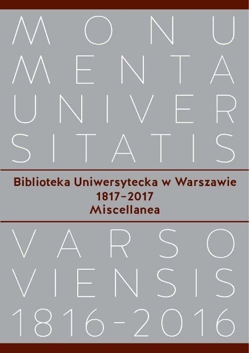 Biblioteka Publiczna utworzona w 1817 r. przy nowo założonym Królewskim Uniwersytecie Warszawskim miała kontynuować tradycje wywiezionej do Petersburga Biblioteki Publicznej Rzeczypospolitej, pełniąc funkcję narodowej skarbnicy wiedzy i kultury. Była też ważnym elementem planu rozwoju czytelnictwa w Królestwie Polskim, a wraz z Uniwersytetem – szerszej polityki edukacji społeczeństwa polskiego. Przemianowana później na Bibliotekę Uniwersytecką w Warszawie, jest dziś jedną z największych i najlepszych bibliotek akademickich i naukowych w Polsce, oferującą nowoczesne usługi i wprowadzającą niestandardowe rozwiązania. W tomie znalazły się obszerne teksty opisujące Bibliotekę w początkach jej istnienia (1817–1831), a także współcześnie (1993–2013), w przełomowym dla tej instytucji okresie przenosin do nowego gmachu. Towarzyszą im: opracowanie krytyczne autografów Joachima Lelewela Projekt utrzymania i urządzenia biblioteki oraz Urządzenie Biblioteki, prezentacja źródeł do dziejów BUW w archiwach Petersburga, a także kalendarium historii BUW 1817–2017 oraz aneks z biogramami wszystkich dyrektorów BUW. Publikacja powstała dla uczczenia dwóchsetlecia istnienia Biblioteki. ****** The University of Warsaw Library 1817–2017. Miscellanea The jubilee publication contains the papers describing the University of Warsaw Library at the beginning of its existence (1817–1831) and nowadays (1993–2013). They are accompanied by: the critical study of Joachim Lelewel’s autographs Projekt utrzymania i urządzenia biblioteki [A Project of Maintaining and Outfitting the Library] and Urządzenie Biblioteki [Outfitting the Library], presentation of the sources for the history of the University of Warsaw Library in the archives of Saint Petersburg, as well as the historical timeline of the University of Warsaw Library in the years 1817–2017, and the appendix with biographical notes of all the directors of the library.
