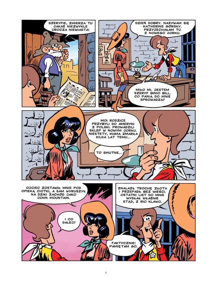 „Szeryfie, zmierza tu jakaś niezwykle urocza niewiasta!” - tymi słowami zaczyna się album „Binio Bill i Szalony Heronimo”, piąty już tom odrestaurowanych przygód kowboja stworzonego przez Jerzego Wróblewskiego. Niewiastą okazuje się Katherine Górski, która szuka zaginionego na Dzikim Zachodzie ojca. Binio Bill najchętniej od razu zabrałby się do pomocy, ale na przeszkodzie staje pilna depesza - Szalony Heronimo z uciekł z rezerwatu i zbiera wojowników z plemienia Apaczy! „Binio Bill i Szalony Heronimo” to ciąg dalszy westernowych przygód bohatera znanego z komiksów drukowanych w "Świecie Młodych" oraz albumu „Skarb Pajutów”. Powstał w 1991 roku, ale niestety już się wtedy nie ukazał. Wkrótce po ukończeniu prac nad rysunkami, ale przed położeniem kolorów, Jerzy Wróblewski zmarł. W 2009 roku, dzięki staraniom rodziny autora, ostatnia przygoda Binio Billa opuściła szuflady i ukazała się w wersji czarno-białej. Teraz po raz pierwszy do rąk czytelników trafia ten album w wersji kolorowej. Tomasz Kaczkowski dołożył wszelkich starań, by zachować wierność kolorystycznej palecie Jerzego Wróblewskiego.