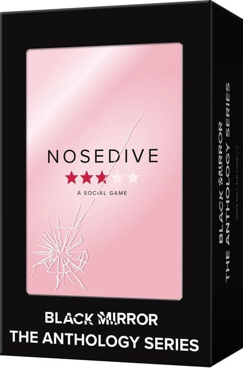 Oceń i poddaj się ocenie! Jak wyglądałby świat, gdyby każde nasze zachowanie było poddawane ocenie, która następnie składałaby się na ogólną pozycję społeczną każdego z nas? Na to pytanie spróbowali odpowiedzieć twórcy Black Mirror – futurystycznego serialu, w którym znajdziemy rozmaite wizje przyszłości człowieka. Niekoniecznie optymistyczne. Teraz mamy okazję sprawdzić to na własnej skórze, grając w Black Mirror: Nosedive. Zapraszamy do świata, w którym ocena społeczna jest jednym z najważniejszych czynników, decydujących o naszym życiu. Jako uczestnicy będziemy starali się utrzymać ją na stałym, wysokim poziomie. UWAGA! Do rozgrywki niezbędna jest aplikacja Nosedive. Należy ją pobrać na jedno urządzenie, które będzie przekazywane między graczami według zasad opisanych w aplikacji. Na czym to polega? Podczas rozgrywki w Black Mirror: Nosedive staramy się zdobyć jak najwięcej punktów stylu życia. W tym celu będziemy dobierali odpowiednie karty (punktowane dodatnio lub ujemnie), a także dzielili się doświadczeniami za pomocą aplikacji. Kluczowym elementem rozgrywki będzie ocena – każdy z graczy po kolei będzie oceniał wydarzenia z życia pozostałych. To my decydujemy, które doświadczenia udostępnimy innym, licząc na ich pozytywną ocenę. Co ważne, aprobata uzyskana od gracza stojącego wyżej w rankingu punktów stylu życia jest bardziej cenna!