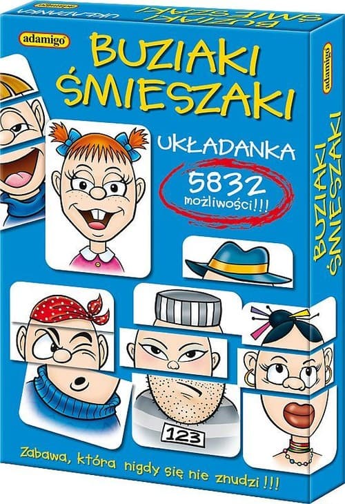Fantastycznym przykładem zaznajomienia dziecka z różnymi rodzajami wyrażania emocji i mimiki twarzy jest gra „Buziaki Śmieszaki” Adamigo. Spośród 18 podzielonych na 3 części buziek wyrażających różne emocje maluch może ułożyć różne mimiczne kombinacje. Niekoniecznie pasujące do siebie części twarzy wyrażające różne emocje, z pewnością rozbawią i zaciekawią maluszka. Ilość elementów gry gwarantują zabawę, która szybko się nie znudzi, ponieważ istnieje ponad 5 832 możliwości ułożenia różnych, najdziwniejszych min. Dzięki takiej zabawie maluch nauczy się rozróżniać emocje, odczytywać je, rozumieć nie tylko swoje nastroje, ale także innych otaczających go ludzi. Dodatkowym atutem gry jest również jej walor humorystyczny. Liczba graczy: 1-4 Wiek: 3+