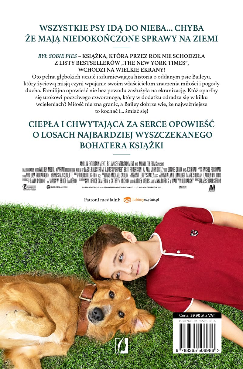 Myśleliście kiedyś o tym, co myśli Wasz czworonożny przyjaciel? Zadawaliście sobie pytanie "Czy jest szczęśliwy?" "Co lubi?" "Był sobie pies" to książka o miłości, przyjaźni i wierności. Perspektywa psa pokazuje nam zupełnie inny świat.Bailey rodzi się jako mała puchata kuleczka. Odkrywa życie po kawałku. Jest niekochanym, bezdomnym kundlem. Traci swoje życie i nagle... odradza się. Jest zupełnie innym psiakiem, słodkim labradorem. Odnajduje prawdziwą miłość w kochającym domu, w objęciach kochającego Ethana. Odkrywa swoje przeznaczenie, ma budzić w ludziach miłość. Jednak kiedyś musi nadejść koniec życia. Jednak to nie koniec. Bailey znowu się odradza. Niesie pomoc. Zawsze jest potrzebnym psiakiem. Ma do spełnienia swoją misję.Był sobie pies" to powieść, która doprowadzała mnie do skrajnych emocji. od płaczu po śmiech. Autor doskonale przedstawił jego postać. Mimo że pies odradzał się w różnych wcieleniach, był nawet suczką, ja zawsze widziałam w nim Baileya. Pokochałam tego psiaka.Większość książki opowiada o pobycie Baileya w domu Ethana. Doskonale ukazała mi miłość tego słodziaka. Chwilami chciałam go przytulić. Po przeczytaniu uświadomiłam sobie, że ta książka nie ma na celu przedstawiania życia psa i nie jest głupią historyjką. Zachęca nas do tego, aby uwierzyć w miłość wiedząc, że każdy ma prawo do miłości. Nie ważne, czy jest to człowiek, kot, czy pies. Każdego można pokochać. Mimo że Bailey był bezdomny. Miał w sobie iskry miłości. Autor pokazał nam go w różnych wcieleniach abyśmy zobaczyli przyjaciela w każdej istocie. Ta książka pomogła mi też docenić mojego psiaka, którego kocham z całego serducha. Pokazała, że pies nie jest czymś, czemu wystarczy dać jeść, pogłaskać raz dziennie. Pies jest przyjacielem, który nigdy o nas nie zapomni. Choćby był tysiące kilometrów od nas, kocha nas i jesteśmy w jego sercu. Choćby każdy się od nas odwrócił on zawsze będzie przy nas. Chociaż nie potrafi mówić darzy największą miłością. Może to jest dziwne, ale po przeczytaniu tej opowieści zmieniłam swoje podejście do świata, do zwierząt, zaczęłam poświęcać im więcej czasu.Każdy chce być kochany i może, ale musi dać więcej miłości od siebie. Minęło dwa miesiące odkąd przeczytałam historię tego słodkiego psiaka i wciąż o niej myślę, o jej przesłaniu...Mogę stwierdzić, że to jedna z najlepszych powieści, jaką czytałam.