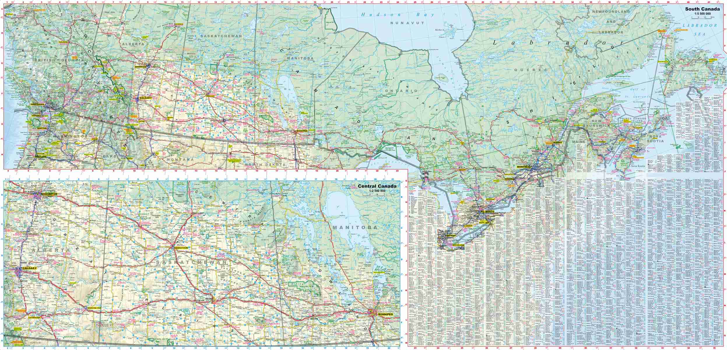 O książce Canada laminowana mapa samochodowo-turystyczna 1:2 500 000 1:5 500 000 1:10 000 000