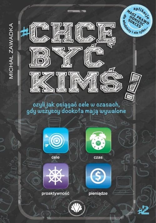 Chcę być kimś! czyli jak osiągać cele w czasach, gdy wszyscy dookoła mają wywalone to jedyna seria polskich książek dla młodzieży z zakresu rozwoju osobistego. Publikacja swoją treścią pyta, odpowiada, prowokuje do myślenia i działania. Rozwiązuje problemy, kiedy trzeba daje przysłowiowego „kopa” i zmienia sposób podejścia do życia, by po przeczytaniu młody człowiek zrozumiał siebie i raz na zawsze zapamiętał, że JEST WYJĄTKOWY i ma prawo odnieść sukces! Oczywiście przy swoim zaangażowaniu… :) „Chcę być kimś” to nie tylko książka, to sposób myślenia i życia. Dzięki niej czytelnicy zbudują wiarę w siebie i zainspirują się do działania. To „miejsce”, w którym młodzi ludzie, zamiast usłyszeć paplanie, że są do „bani” i że do niczego się nie nadają, dowiedzą się, jak wiele znaczą i jak dużo są w stanie zdziałać. Poznasją narzędzia, dzięki którym nauczą się wyznaczać i zdobywać cele oraz zarządzać czasem i pieniędzmi. Autor wskazuje, jak budować wartościowe relacje i podejmować odpowiednie decyzje. Czytelnicy poznają techniki sztuki przemawiania, zagłębią się w sztukę myślenia i zmierzą się z barierami, które hamują ich w życiu. Michał Zawadka docenia indywidualność każdego odbiorcy, pokazuje wagę proaktywności i samodyscypliny. Cała seria zawiera 16 obszarów budowania osobowości. Część druga „Chcę być kimś” #2 to: CELE CZAS PROAKTYWNOŚĆ PIENIĄDZE Książka powstała w oparciu o motywacyjne spotkania autora z ponad 5 000 nastolatków w całej Polsce. Publikacja jest jednocześnie doskonałym narzędziem dla nauczycieli i rodziców, ułatwiającym komunikację i ukazującym rozwój osobisty młodzieży.  www.chcebyckims.pl