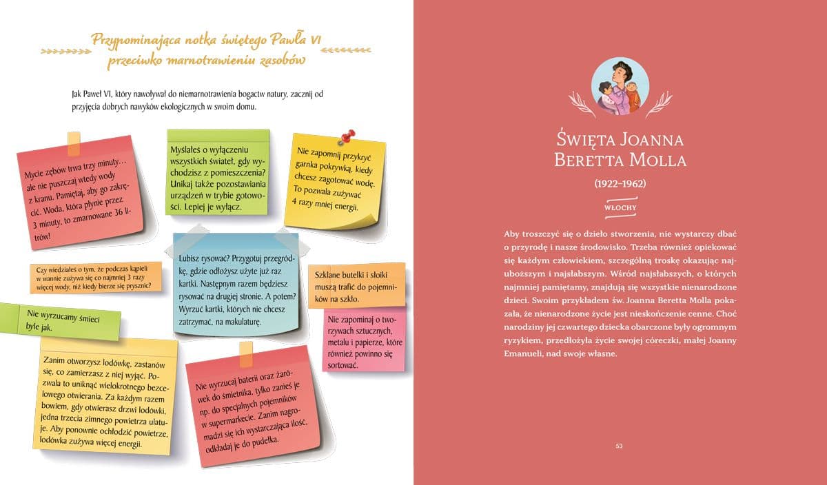 Odkryj 15 pięknych historii o świętych, którzy wychwalali piękno i wielkość Boskiego stworzenia przez całe swoje życie: Święty Franciszek z Asyżu, Święta Hildegarda z Bingen, Święta Katarzyna Tekakwitha, Święty Benedykt z Nursji, Czcigodny Sługa Boży ojciec Jakub Sevin, Święty Piotr Jerzy Frassati, Czcigodny Sługa Boży Hieronim Lejeune, Święty Paweł VI, Święta Joanna Beretta Molla, Błogosławiona Sandra Sabattini, Święta Teresa z Lisieux, Święty Karol de Foucauld, Błogosławiony Carlo Acutis, Święta Matka Teresa z Kalkuty, Święty Jan Paweł II. Wraz z nimi dołącz do modlitwy i chwalenia Boga oraz podejmij wyzwanie troski o bliźnich oraz o całe dzieło stworzenia.Szczegółowe informacje na temat książki Chwalmy Boga ze świętymi. Jak piękne są Twoje dzieła, Panie!