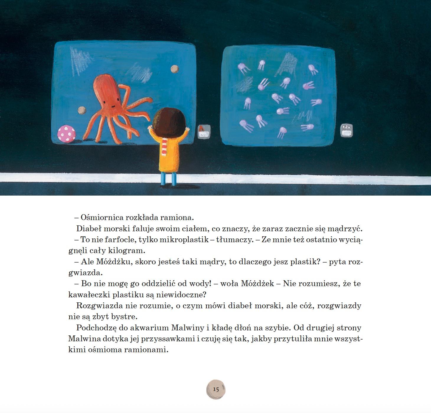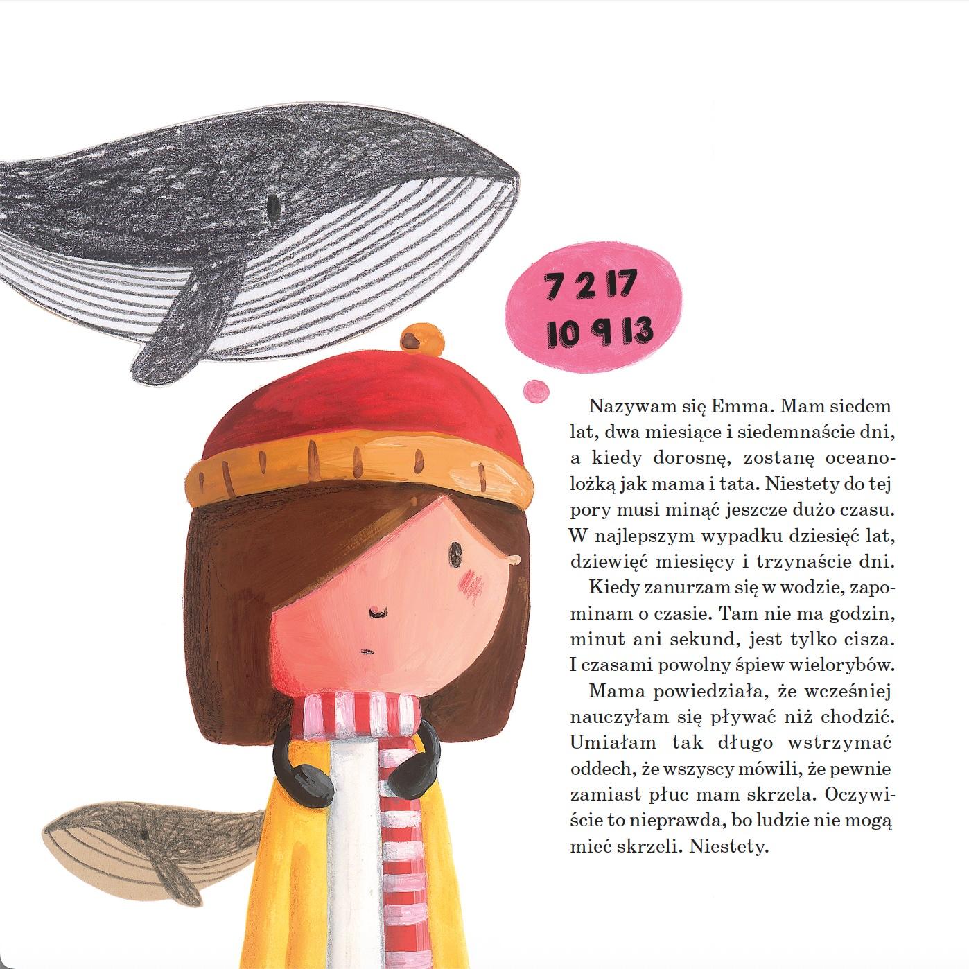 Emma ma siedem lat, dwa miesiące i siedemnaście dni. Do szkoły chodzi od dwóch tygodni, trzech dni i dziesięciu minut. Różni się od dzieci w klasie – jest osobą w spektrum autyzmu, ma nadwrażliwość słuchową i boi się mówić przy innych ludziach. Przez to wszystko dotykają ją różne problemy w szkole. Ale dobrze czuje się w towarzystwie zwierząt. Rozumie wieloryby, delfiny, rekiny, manaty, morsy, narwale, kraby, gąbki i rozgwiazdy. Cały wolny czas spędza w oceanarium, gdzie pracują jej rodzice.