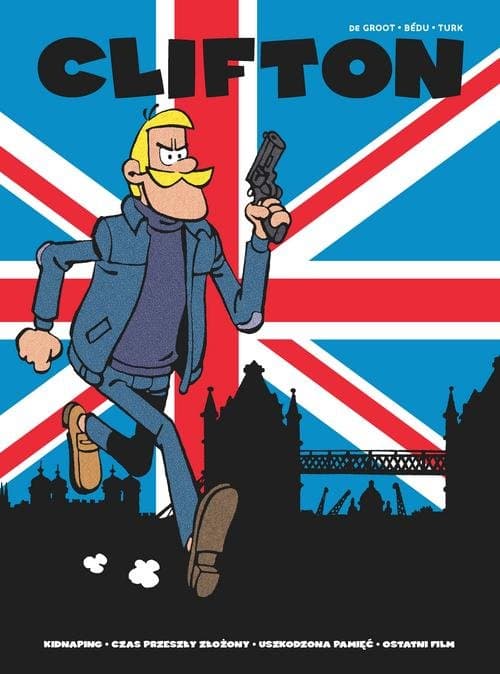 Pierwszy ze zbiorczych albumów kultowej serii opowiadającej o przygodach sławnego agenta MI5 i detektywa Cliftona! Publikacja zawiera cztery opowieści: Kidnaping, Czas przeszły złożony, Uszkodzona pamięć i Ostatni film. Emerytura byłego pułkownika MI5, Harolda Wilberforce’a Cliftona, wydaje się niezwykle spokojna – mieszka w przytulnym domku na malowniczej angielskiej wsi, jada pyszne posiłki przygotowywane przez miss Partridge... Ale to tylko pozory! Clifton nie należy do wspominających dni chwały agentów, którym wystarczy kolekcjonowanie banderoli od cygar. Jako detektyw amator i Bocian Meloman – dowódca zastępu skautów, ten wieczny pechowiec wciąż wpada w nowe kłopoty. I mimo zasłużonej emerytury Clifton musi – w imię sprawiedliwości, skautingu i Anglii – przypominać bandytom wszelkiej maści, że przestępstwo nie popłaca! Autorem rysunków do trzech spośród czterech zawartych w albumie tomów przygód Cliftona jest znakomity belgijski grafik Bédu (Bernard Dumont), który zyskał w Polsce wielką popularność dzięki serii Hugo.