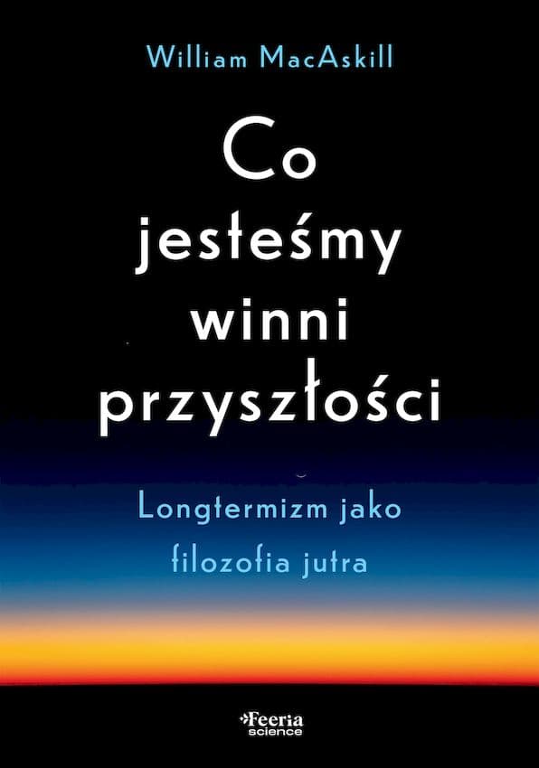 Spisane dzieje ludzkości sięgają zaledwie pięciu tysięcy lat wstecz, a historia tego, co dopiero przed nami, może objąć jeszcze całe milenia… albo zakończyć się jutro. Od wyborów dokonanych przez nas zależy, czy nasze wnuki będą żyć w szczęściu i dobrobycie, a zasoby naszej planety nie wyczerpią się u kresu ich życia. William MacAskill, oksfordzki filozof, którego myśl zawarta w niniejszej książce jest inspiracją dla najbardziej wpływowych osób na świecie, zapoznaje czytelników z longtermizmem – koncepcją, zgodnie z którą priorytetem moralnym naszych czasów powinno być działanie na rzecz jak najlepszej przyszłości ludzi. Jednak jeśli chcemy, aby nasza cywilizacja przetrwała, nie wystarczy, że będziemy pracować nad cofnięciem zmian klimatycznych czy powstrzymaniem kolejnej pandemii. Wyzwania, jakie stoją przed nami, to także przygotowanie przyszłych pokoleń do życia na planecie, na której będzie królować inteligencja sztuczna, a nie biologiczna, koroną stworzenia zaś będą byty cyfrowe, a nie ludzie. Musimy mieć pewność, że nasza cywilizacja podniesie się po każdym upadku i zadbać o jej technologiczny i moralny rozwój, a w tym celu być gotowi na każde poświęcenie. Powyższy opis pochodzi od wydawcy.