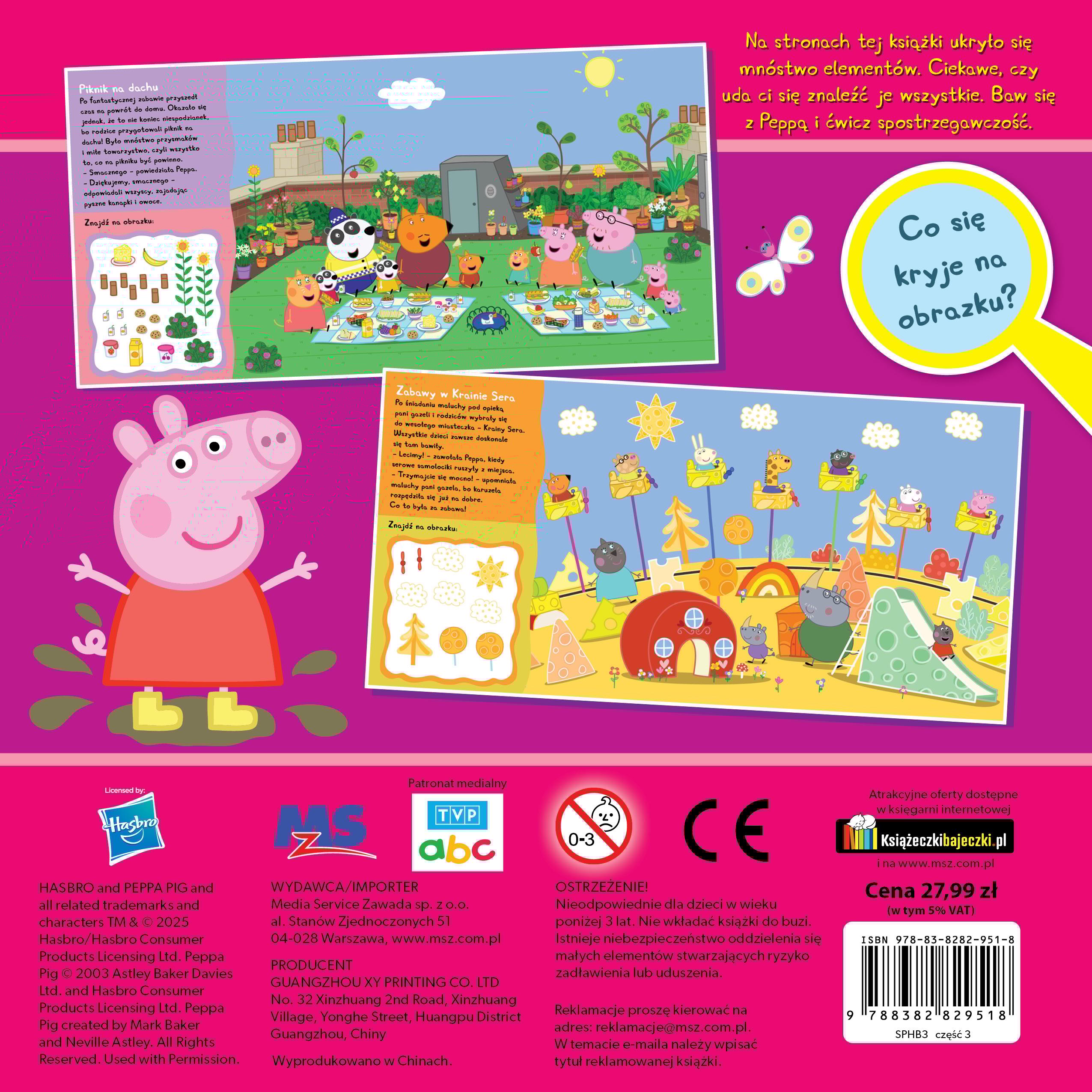 Seria książek SZUKAM I MAM to gwarancja doskonałej zabawy, a zarazem świetny trening spostrzegawczości, cierpliwości, koncentracji i pamięci wzrokowej. W środku każdy fan Peppy znajdzie historyjki i ma za zadanie wyszukać konkretne elementy.