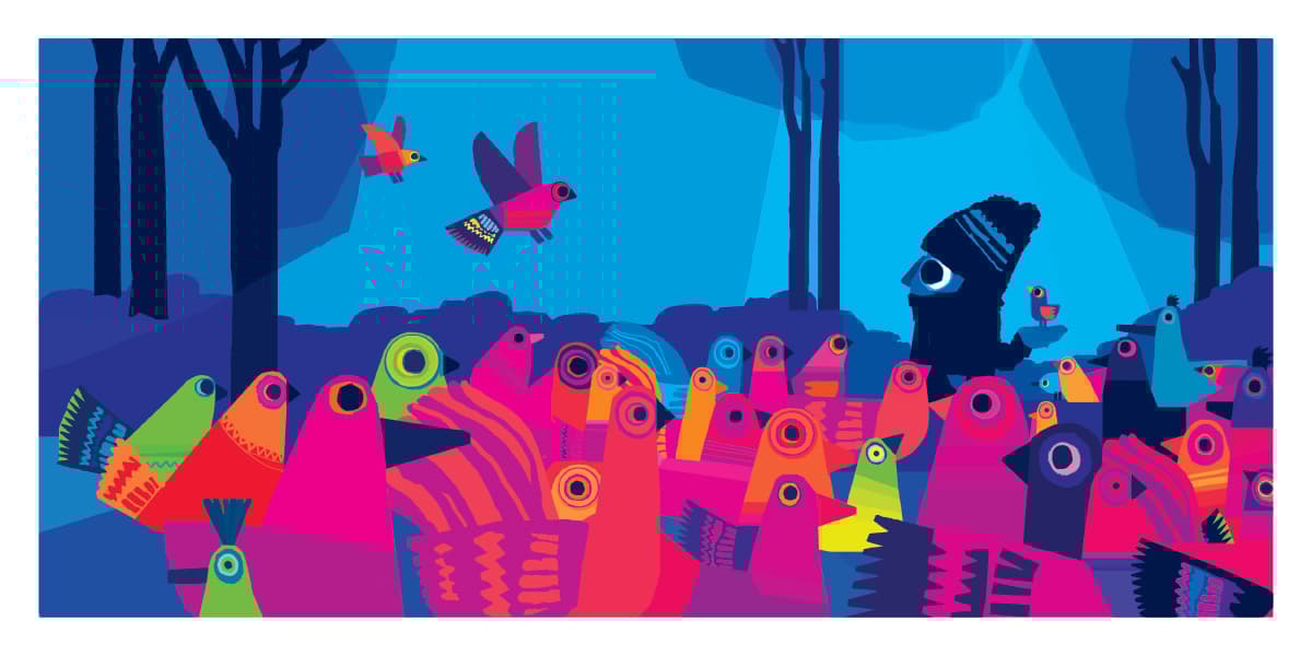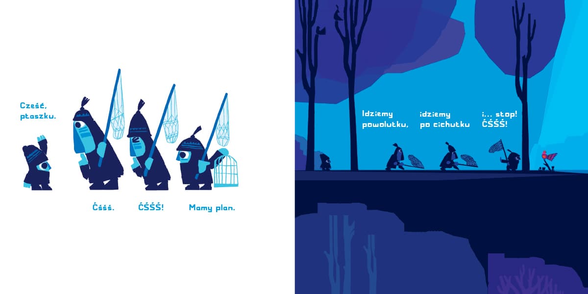 Czwórka przyjaciół spotyka w lesie pięknego, kolorowego ptaka. Czy uda im się go schwytać? Ćśśś! Mają plan...
