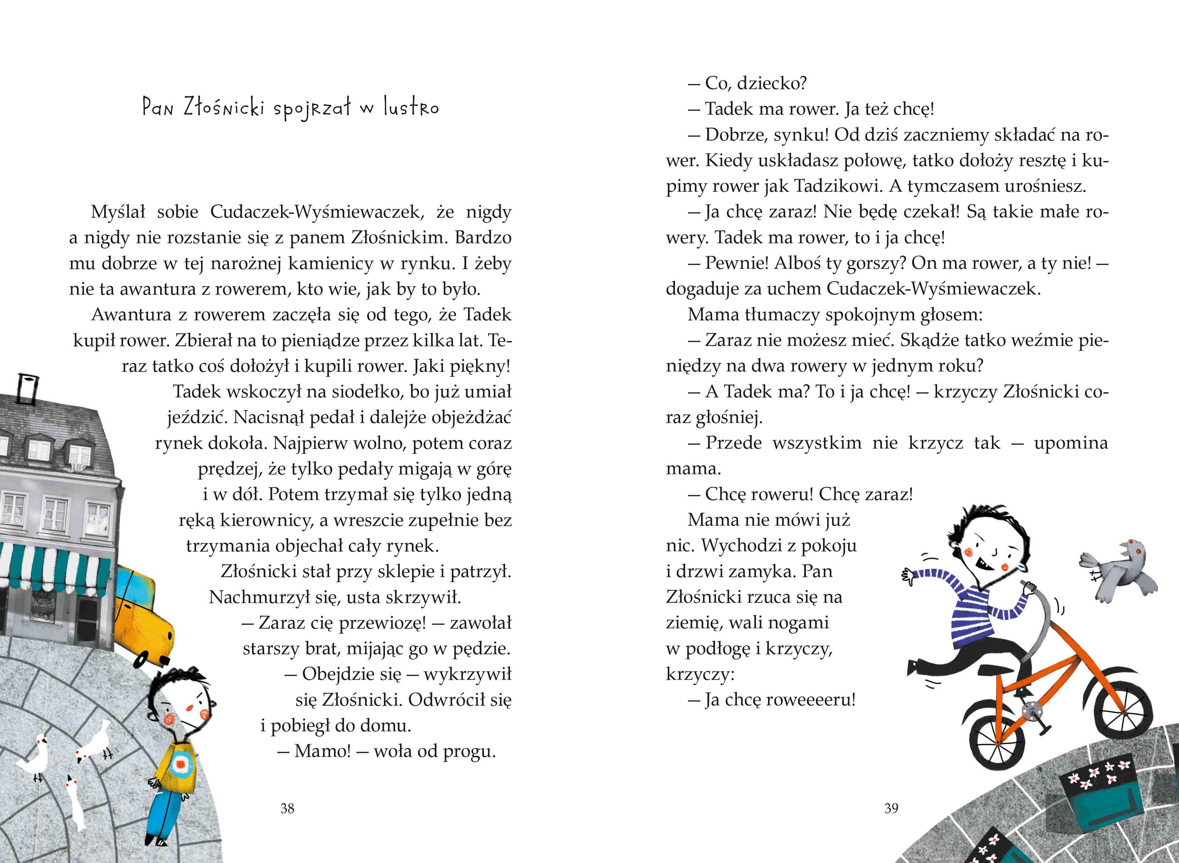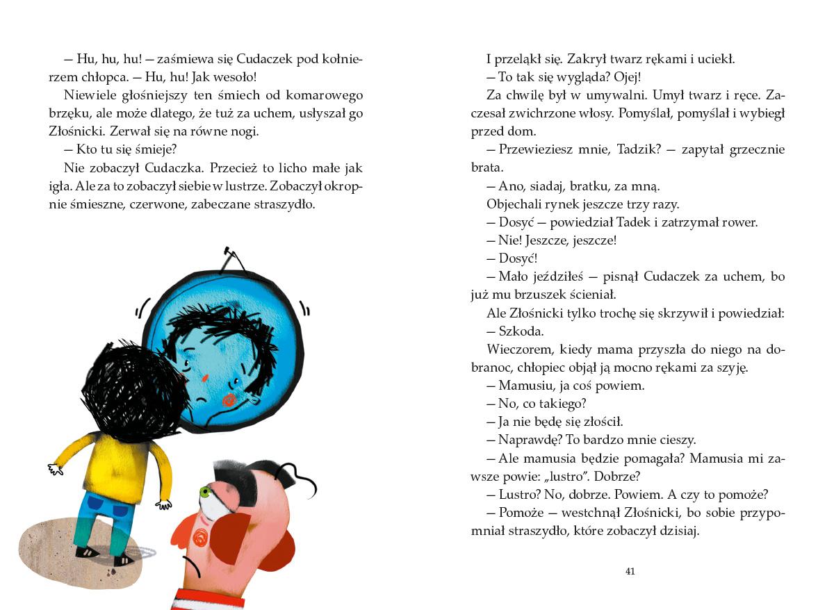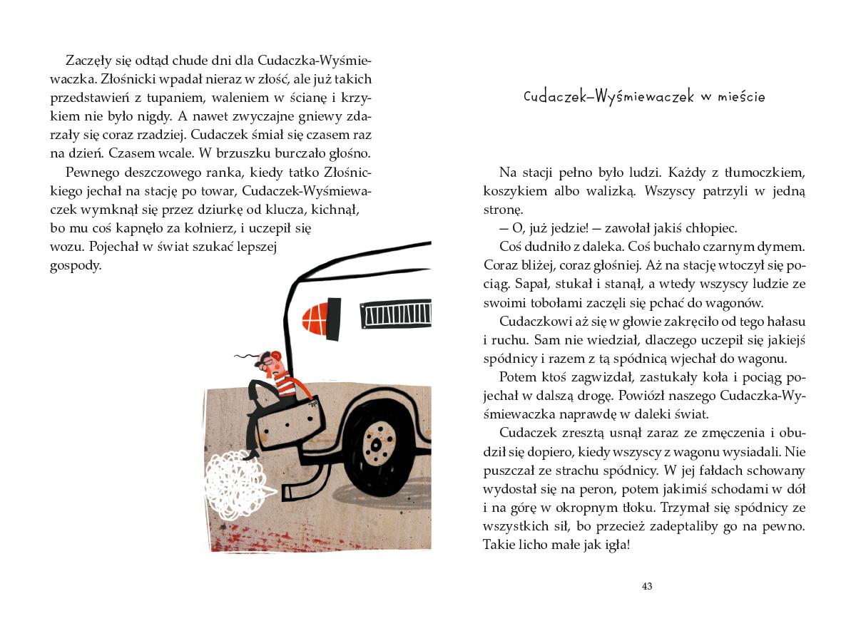 Cudaczek-Wyśmiewaczek, licho malusie i cieniutkie jak igła, mieszkał w domku, co to nie był ani duży, ani mały, tylko w sam raz. Nie jadł i nie pił, tylko śmiechem żył. Śmiał się i śmiał do rozpuku, a brzuszek pęczniał mu i pęczniał, aż napęczniał jak ziarnko grochu. Wtedy Cudaczek był syty i zadowolony. Obrażalska, Złośnicki, Beksa, pan Byle-jak, unikająca grzebienia Kasia i inne dzieci dostarczały złośliwemu skrzatowi wielu powodów do szyderczego śmiechu. Wredne licho tylko nim się żywiło i trudno było się od niego uwolnić. Koniecznie sprawdźcie, jak dzieciaki sobie z tym poradziły! "Cudaczek-Wyśmiewaczek" to ulubiona lektura wielu pokoleń dzieci!Szczegółowe informacje na temat książki Cudaczek Wyśmiewaczek