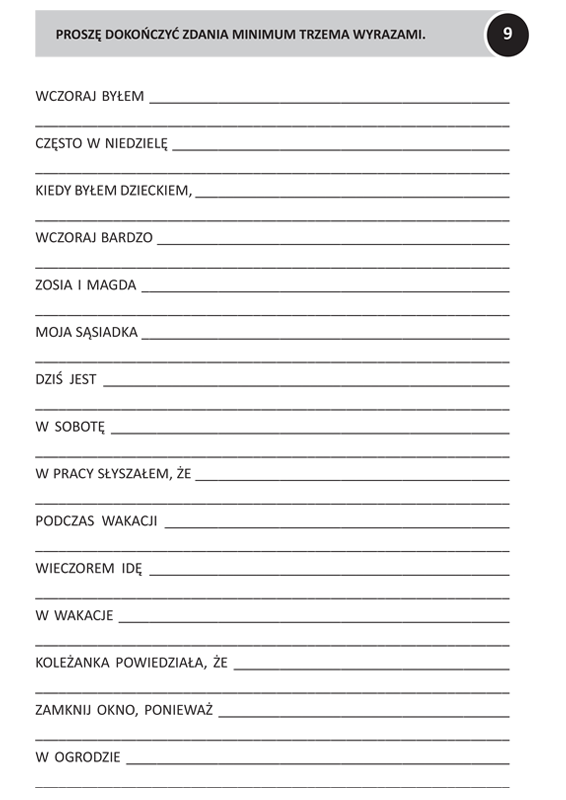 Zadania mają na celu wzbogacić słownictwo, stymulować pamięć, wyobraźnię, koncentrację i uwagę.