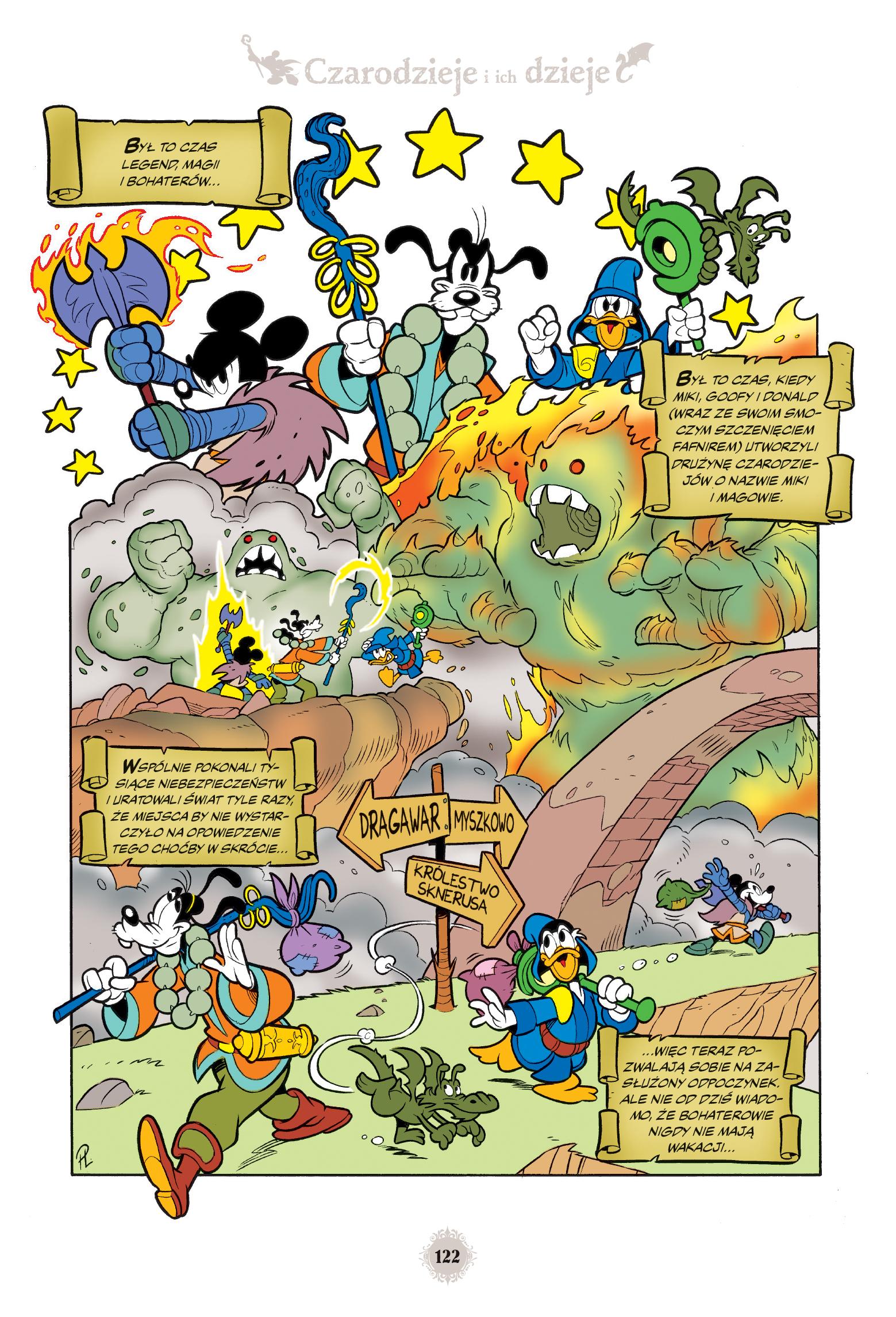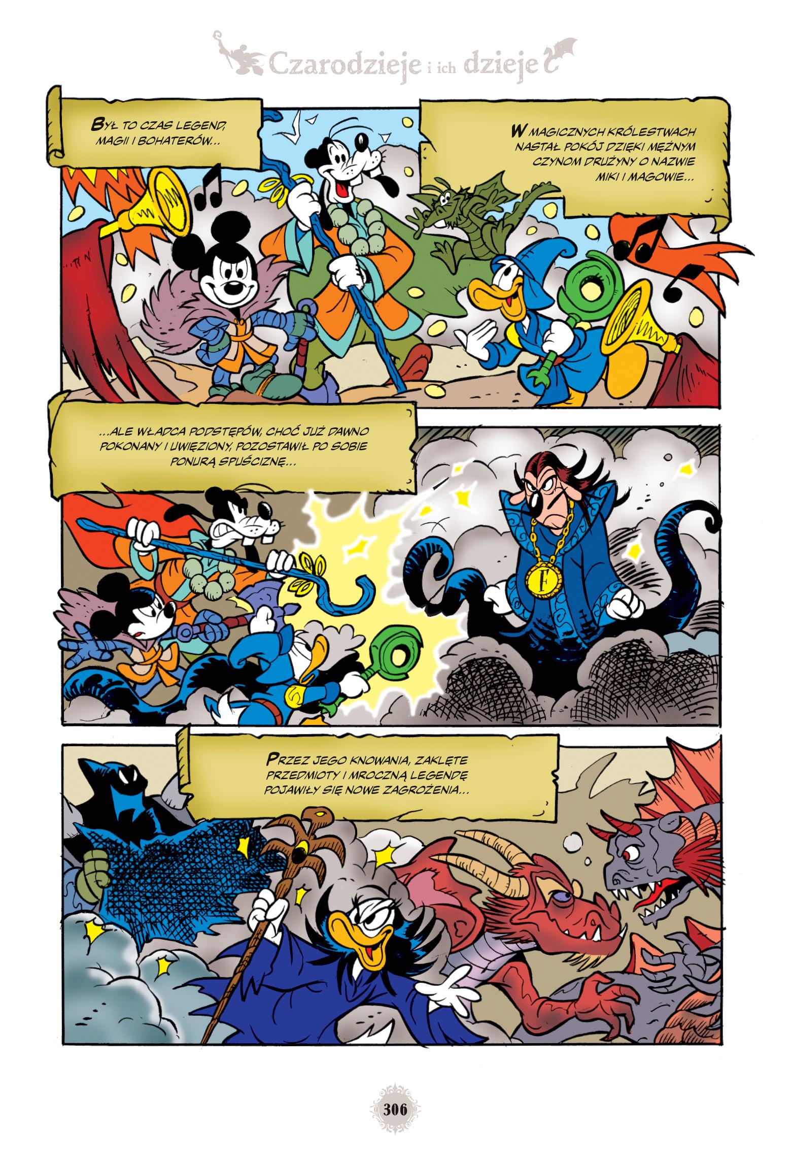 Trzeci tom serii o przygodach dzielnej drużyny Miki i Magowie. Wejdz´ do s´wiata legend, mito´w i przepowiedni, dzielnych bohatero´w, wielkich przygo´d, dalekich wypraw, staroz˙ytnych artefakto´w, mago´w, kro´lo´w, wojowniko´w, smoko´w... a takz˙e znakomitego humoru! Odkryj nowe przygody znanych disnejowskich bohatero´w w s´wiecie fantasy! W magicznych królestwach nastały czasy pokoju i wygląda na to, że drużyna Miki i Magowie nie będzie już miała nic do zrobienia. Ale to tylko pozory. Gdzieś na świecie ciągle pojawiają się nowe zagrożenia, czarodzieje muszą więc zachować czujność. Najpierw orkoperze zwracają się przeciwko swoim smoczym sojusznikom. Później okazuje się, że choć Fantomen został uwięziony, jego cień wciąż wisi nad królestwami. Wcześniej jednak poznajemy przygody Donalda z czasów, zanim wstąpił do drużyny i służył jeszcze na dworze swojego wujka, króla Sknerusa. Album zawiera materiały opublikowane pierwotnie w „Legendary Collection Wizards of Mickey”: 7. „Le leggende perdute”; 8. „Lemuria”; 9. „Legacy” oraz w magazynie „Topolino” nr 3124 („Mondimontagne”).