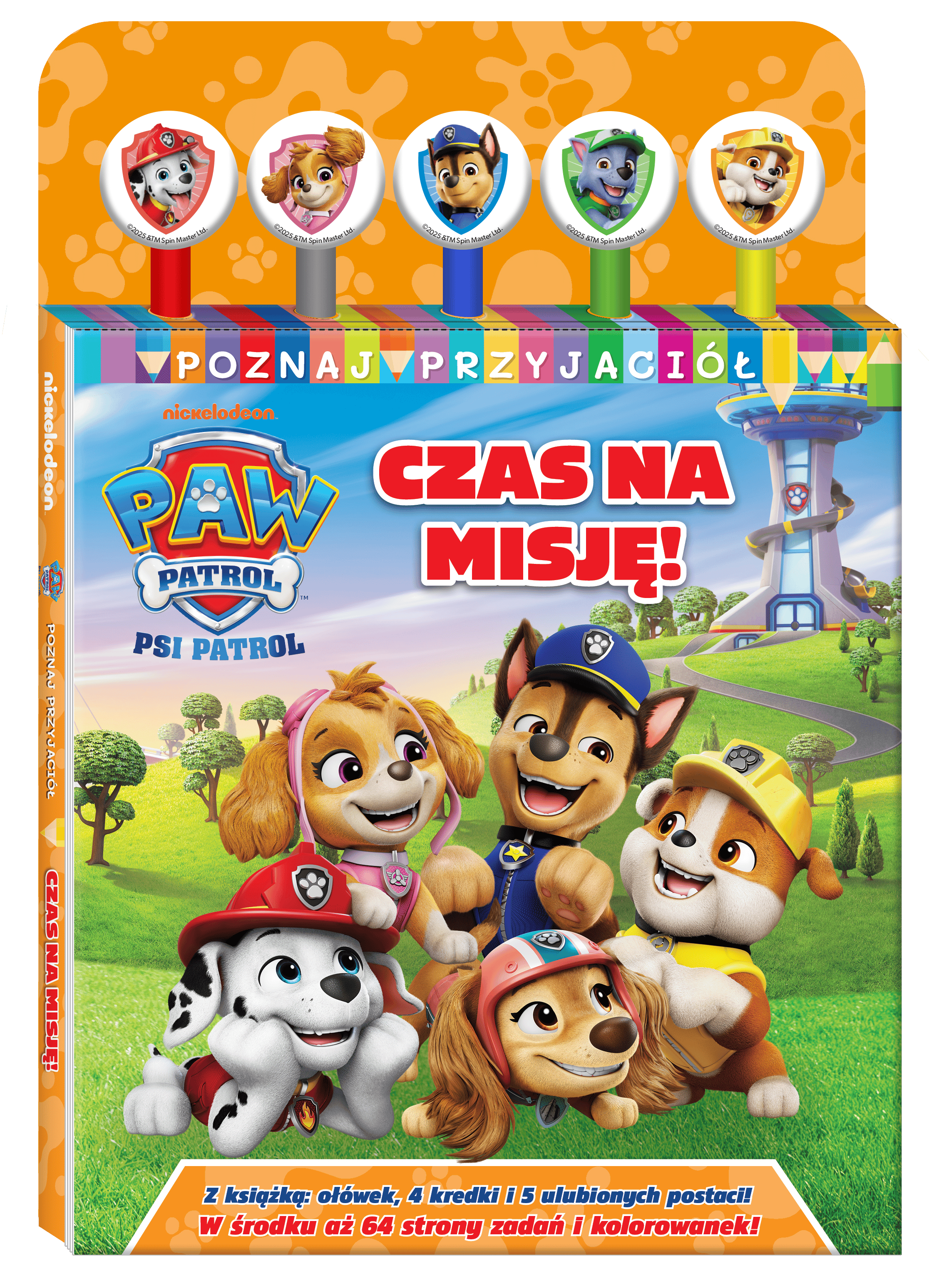 Książka Psi Patrol. Poznaj Przyjaciół to nie tylko wspaniała rozrywka, ale także trening spostrzegawczości, sprawności manualnej i koncentracji uwagi. W środku aż 64 strony fantastycznej zabawy z ulubionymi bohaterami. Każda fanka i każdy fan dzielnych piesków z Psiego Patrolu i Rydera znajdzie coś dla siebie. Do publikacji są też dołączone: ołówek, 4 kredki i 5 gumek do ścierania!