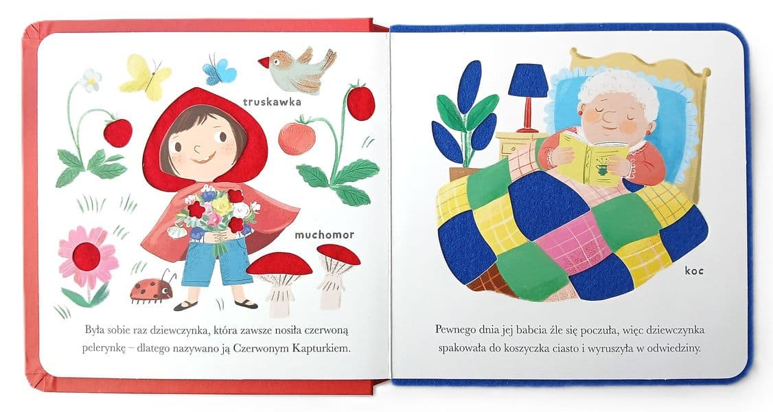 Dzięki tej bajce z mięciutkimi filcowymi elementami Twój maluszek pozna historię Czerwonego Kapturka i nauczy się nowych słówek.
