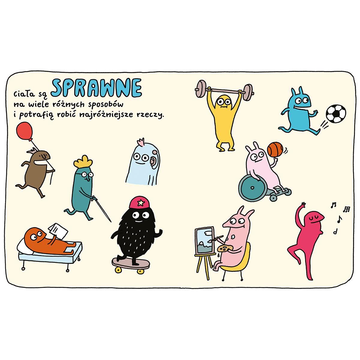 Ciało jest z nami przez całe życie i nie odstępuje nas ani na krok. Dzięki niemu możemy poznawać świat, przytulać się i robić mnóstwo wspaniałych rzeczy. I co ważne – niezależnie od wyglądu, wieku, sprawności czy talentów każde ciało zasługuje na to, żeby być kochane, szanowane i szczęśliwe!
