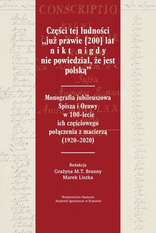 Części tej ludności „już prawie [200] lat nikt nigdy nie powiedział, że jest polską” Monografia jubileuszowa Spisza i Orawy w 100-lecie ich częściowego połączenia z macierzą (1920–2020) red. nauk. Grażyna M.T. Branny, Marek Liszka Książka
