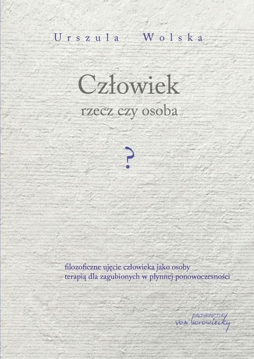 Człowiek rzecz czy osoba? Filozoficzne ujęcie człowieka jako osoby terapią dla zagubionych w płynnej ponowoczesności Urszula Wolska Książka