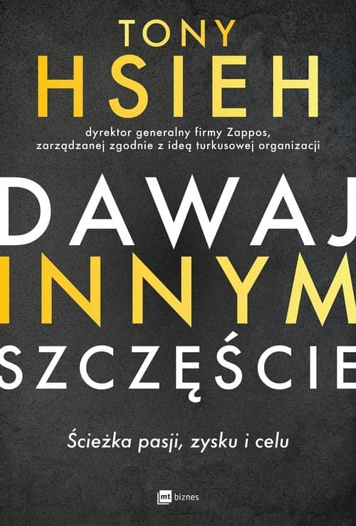 Zapłać nowo zatrudnionym pracownikom 2000 dolarów za odejście. Uczyń obsługę klienta odpowiedzialnością całej firmy – nie tylko działu. Skup się na kulturze firmy jako na priorytecie nr 1. Wykorzystaj badania nauki o szczęściu do prowadzenia biznesu. Pomóż pracownikom rozwijać się – zarówno osobiście, jak i zawodowo. Staraj się zmienić świat. Aaa, i zarabiaj pieniądze… Brzmi jak kompletne szaleństwo? Są to wszystko standardowe procedury operacyjne w Zappos, internetowej firmie detalicznej, która zarabia ponad miliard dolarów w sprzedaży brutto rocznie. Po zadebiutowaniu w roku 2009 jako najwyżej plasująca się nowa firma na corocznej liście „Najlepsze firmy, dla których warto pracować” magazynu „Fortune” Zappos zostało przejęte przez Amazon w transakcji wycenionej na ponad 1,2 miliarda dolarów w dniu zamknięcia. W Dawaj innym szczęście dyrektor generalny Zappos, Tony Hsieh, dzieli się z czytelnikami różnymi lekcjami, jakie odebrał w biznesie i w życiu, poczynając od założenia farmy robaków przez prowadzenie pizzerii po założenie LinkExchange, prowadzenie Zappos i jeszcze więcej. Prowadzone w szybkim tempie i realistyczne Dawaj innym szczęście pokazuje, jak mocno odmienny rodzaj kultury korporacyjnej może być potężnym modelem dla osiągania sukcesu – i jak poprzez koncentrowanie się na szczęściu otaczających cię ludzi możesz radykalnie zwiększyć swoje szczęście. *** Ta książka jest fantastyczna. To, jak Tony i Zappos rozwinęli się do miliarda dolarów w sprzedaży brutto, jest tylko początkiem. Porusza ona wszystko – od pozyskiwania funduszów po znajdowanie szczęścia, od autentycznych e-mali po listy kontrolne. Mocno osobista i mocno praktyczna. – Tim Ferriss, autor bestsellera 4-godzinny tydzień pracy