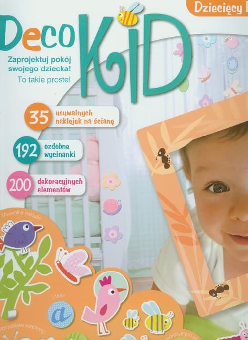 Aby udekorować pokój dziecka, wcale nie trzeba być złotą rączką ani artystą plastykiem – wystarczy odrobina zapału... no i nasz album! Te strony z wycinankami, szablonami i usuwalnymi naklejkami sprawią, że pokój Twojego dziecka zamieni się w magiczny, pełen radości i ciepła świat... Umieszczajcie ozdoby na ścianach, drzwiach, w oknach, przy łóżeczku dziecka, na komodzie lub na szafie... Uwolnijcie wyobraźnię! W dekorowaniu najważniejszy jest talent... Skąd! Najważniejsza jest dobra zabawa! Dlaczego warto mieć tą książkę? Przygotowano w niej wszystko, co potrzebne, by w nowoczesny, stylowy i oryginalny sposób zaprojektować wnętrze dziecięcego pokoju. Znajdziemy w niej: dekoracyjne motywy, usuwalne naklejki, ramki na zdjęcia, ozdobną taśmę, girlandy i karuzele, pocztówki i minipostery, szablony i wykrojniki oraz literki do tworzenia napisów... To pomysł i inspiracja – udana zabawa w projektowanie wnętrz.