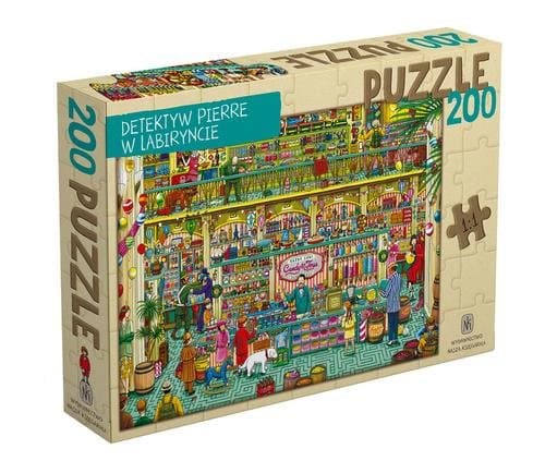 W tym niezwykłym sklepie można znaleźć wszystkie łakocie, o jakich marzysz! Są tu słoje wypełnione landrynkami, okrągłe lizaki, batony czekoladowe i mnóstwo zabawek. Jeśli chcesz je dokładnie obejrzeć, ułóż obrazek. Dodatkowo możesz zabawić się w detektywa i spróbować odszukać wskazane na pudełku wybrane elementy. Niezwykła gratka dla wszystkich fanów detektywa Pierre’a, znanego z serii książek „Detektyw Pierre w labiryncie”. Puzzle składają się z 200 elementów, a obrazek po ułożeniu ma wymiary 47 x 33 cm. Uwaga! Produkt nieodpowiedni dla dzieci w wieku poniżej 3 lat. Wyprodukowano w Polsce.