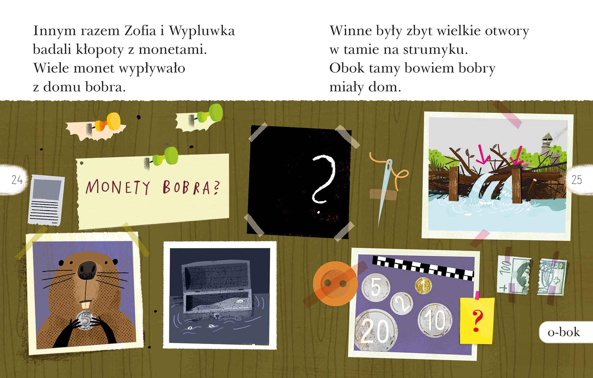 Sowa Zofia prowadzi biuro detektywistyczne „Blisko Natury” i jest znana z tego, że pomaga leśnym zwierzętom rozwiązywać zagadki kryminalne. W pracy Zofia wykorzystuje swoją niepospolitą mądrość, zmysł obserwacji oraz intuicję. Jednak w pojedynkę trudno działać skutecznie, dlatego Zofii pomaga nieoceniony asystent – padalec Wypluwka. Ten osobliwy tandem, posiłkując się doskonałą znajomością praktyk przestępczych i stosując nie tylko własną intuicję, lecz również sprawdzone metody naukowe, radzi sobie z najbardziej wyrachowanymi przestępcami i sprawia, że w lesie panuje harmonia. Składam zdania to drugi poziom serii „Czytam sobie” i propozycja dla dzieci, które rozpoczęły już przygodę z czytaniem. Zdania są tu dłuższe, a w tekście jest więcej dialogów. Duże litery ułatwiają czytanie, a wyrazy w ramkach pomagają w ćwiczeniu umiejętności sylabizowania. Lekturę urozmaicają kolorowe ilustracje, a na końcu książki wytrwali czytelnicy znajdą naklejki i dyplom, które są nagrodą za trud czytelniczy oraz wzmacniają poczucie sukcesu związane z samodzielną lekturą.