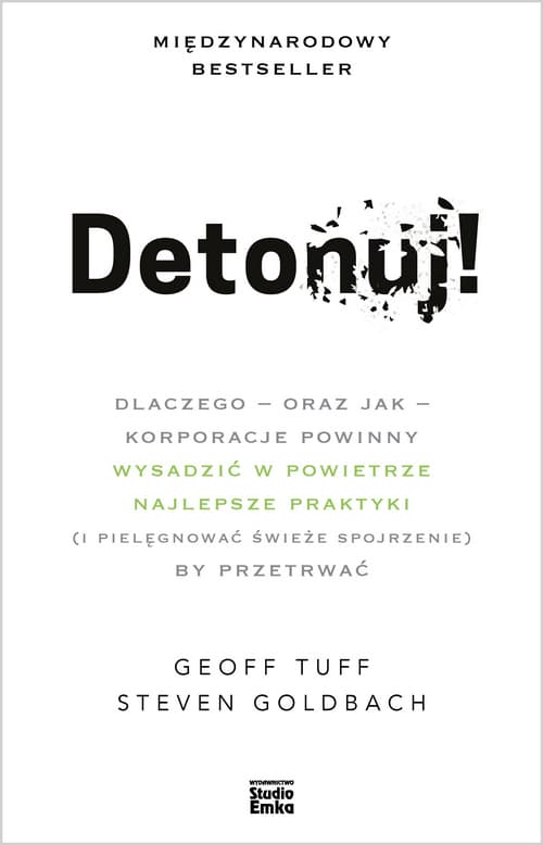 KAŻDEGO DNIA FIRMY, CHCĄC PRZETRWAĆ, PODEJMUJĄ NIEWŁAŚCIWE DZIAŁANIA. Kierują się dogmatami i „najlepszymi praktykami”, nie zastanawiając się nad tym, co właściwie robią. Przez lata rynek pozwalał, by taki bezmyślny, automatyczny wybór działał bez większych konsekwencji. Jednak otaczająca nas rzeczywistość gwałtownie się zmienia – i to w tempie, na które nie wszyscy są przygotowani. Detonuj! to książka, której autorzy odwołują się do zachowań sprzecznych z intuicją, zachęcając organizacje do kwestionowania wszystkiego, co przyczynia się do tworzenia złudnej stabilności. Tłumaczą, w jaki sposób kształtują się niewłaściwe firmowe nawyki. Uczą, jak wykrywać - i likwidować - „najlepsze praktyki”; przedstawiają rozwiązania alternatywne, które mogą zapewnić sukces. Analizując naturę zmiany, Tuff i Goldbach wyjaśniają, dlaczego „standardowe procedury prowadzenia działalności”, opracowane w przeszłości, nie będą obowiązywały w przyszłości, i wskazują siedem „utartych reguł postępowania”, które należy zastąpić nowymi praktykami. Radzą też firmom, jak tego dokonać, stosując cztery podstawowe zasady pozwalające skutecznie współzawodniczyć w czasach przyspieszającej zmiany. Aby być gotowym na detonację, musisz nauczyć się kwestionować czynności i sposoby działania nieprzynoszące twojej organizacji żadnej wartości. Zamiast trzymać się wiedzy sprzed dekad, korzystaj z lekcji, jakich współcześnie udzielają nam firmy skutecznie i z sukcesem konkurujące w cyfrowej rzeczywistości. Dzięki tej książce nauczysz się określać strategiczne obszary aktywności twojej organizacji i wypróbujesz nowe praktyki w sposób niezagrażający jej wydajności oraz podstawowemu zakresowi działania. Będzie to z korzyścią zarówno dla ciebie, jak i twojej firmy. Detonuj!, książka wypełniona przykładami i rozwiązaniami wynikającymi z doświadczeń autorów, którym wielokrotnie powierzano projektowanie innowacyjnych postaw w największych i najbardziej dochodowych firmach świata, to skierowane do ciebie wyzwanie, by wysadzić w powietrze przeterminowane idee i przestarzałe sposoby biznesowej działalności.