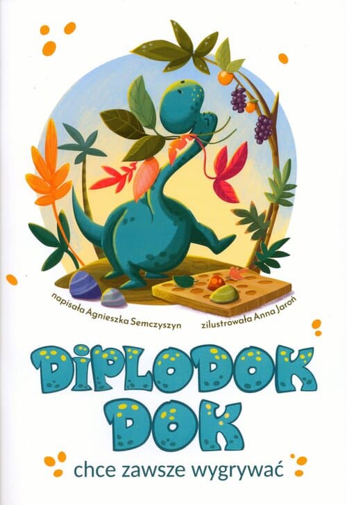 Wiwat Dinoliściobranie! Do stada diplodoków przybywa gra planszowa. Dok zagra po raz pierwszy w życiu. Pierwszy raz zazna też smaku porażki… Próbuje sposobów, by jej uniknąć, a do pomocy wkracza nawet dinowróżka. Czego tym razem nauczy się Dok? „Diplodok Dok chce zawsze wygrywać” to nie tylko książka dla dzieci, które nie potrafią przegrywać. Jej lektura będzie okazją do rozmowy o uczciwości i odporności na manipulację.