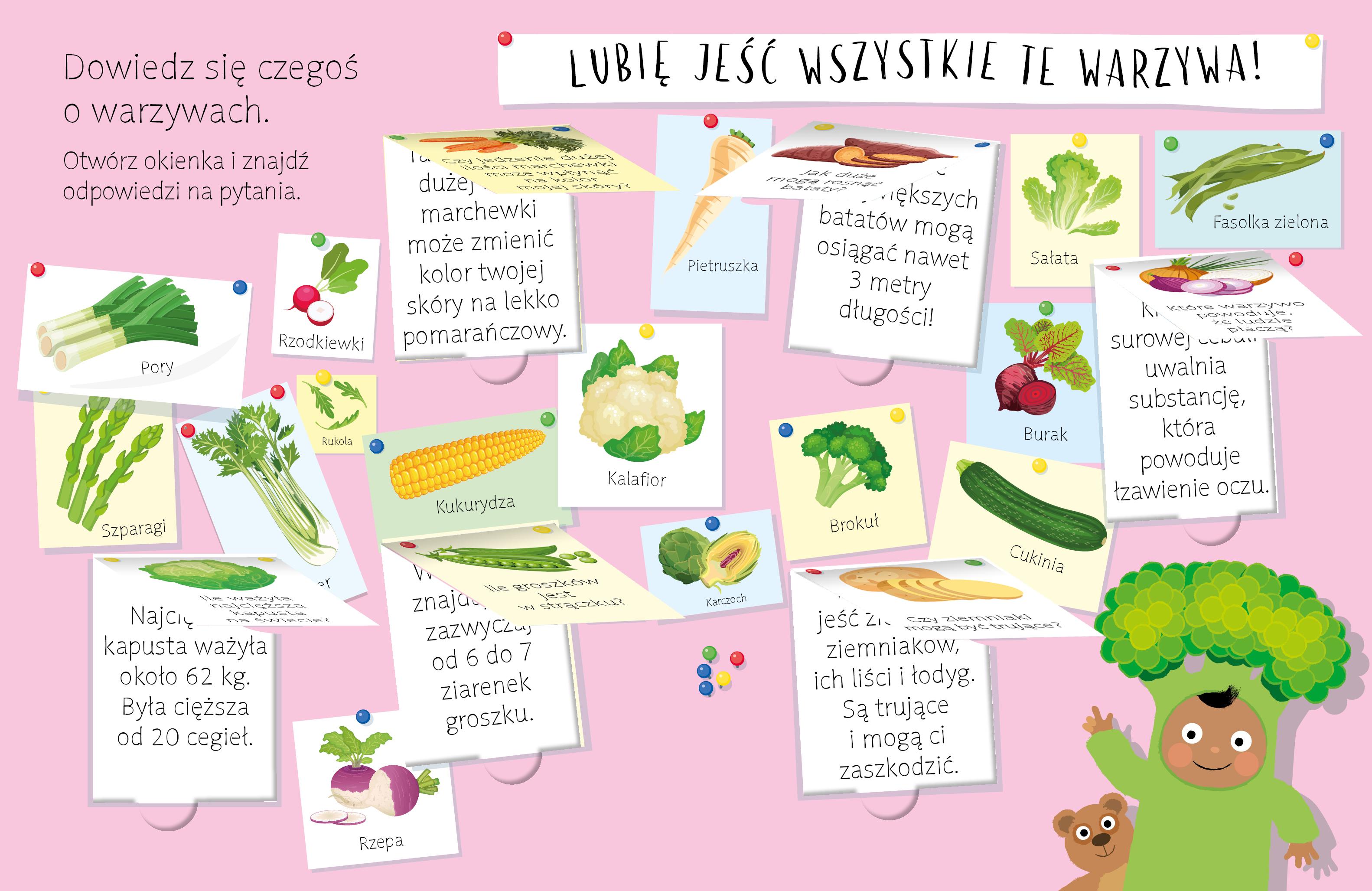 Prosty, bliski dzieciom tekst i pełne humoru ilustracje wyjaśniają, dlaczego warzywa są zdrowe i jaką rolę pełnią zawarte w nich substancje. Książka zawiera także ciekawostki o warzywach, pokazuje ich różnorodność i zachęca do jedzenia warzyw. Książka z pewnością pomoże dorosłym odpowiedzieć na zawarte w tytule pytanie w sposób prosty, zabawny i jednocześnie satysfakcjonujący dociekliwego malucha. Jest niewielkich rozmiarów, dlatego można ją zabrać ze sobą wszędzie, a okienka dodatkowo uatrakcyjnią odkrywanie odpowiedzi na nurtujące pytania. Pozostałe tytuły książek w serii Trudne pytania, proste odpowiedzi: Dlaczego muszę spać? Dlaczego ludzie chorują Dlaczego muszę myć zęby? Dlaczego trzeba słuchać rodziców? Dlaczego trzeba dzielić się z innymi?Szczegółowe informacje na temat książki Dlaczego trzeba jeść warzywa?
