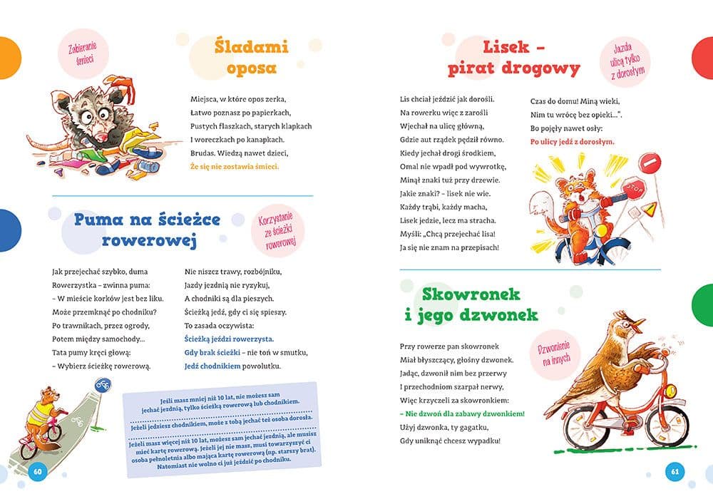 Dobre maniery na wesoło ukazały się w nowej serii Wydawnictwa GREG dedykowanej przedszkolakom oraz dzieciom rozpoczynającym edukację wczesnoszkolną. Im wcześniej zapoznamy dziecko z zasadami savoir-vivre’u, tym szybciej i łatwiej się z nimi oswoi. Dobre maniery na pewno przysporzą dziecku przyjaciół, dodadzą pewności siebie i ułatwią odnalezienie się w każdej sytuacji - w przedszkolu, szkole, sklepie, bibliotece, restauracji, w gościach, a także - w domu. Dobre maniery od przedszkola Inni oceniają nas na podstawie kultury osobistej i obycia towarzyskiego. Dobrze jest więc jak najwcześniej zapoznać dziecko z zasadami grzeczności nie tylko od święta, ale na co dzień. Jeżeli podsuniemy mu odpowiednią lekturę, będzie się nie tylko dobrze bawiło przy czytaniu i oglądaniu ilustracji, ale też łatwo zapamięta, co i dlaczego robić nie wypada, a co i dlaczego robić wypada. Pomogą mu w tym przygody zwierzątek - jedne z nich są dobrze wychowane, inne niezbyt mądre, a wszystkie bardzo zabawne i sympatyczne. Dowcipne wierszyki - konkretne przykłady Każdy wierszyk to konkretny przykład. W sumie w książce znajdziecie ponad 120 krótkich, inteligentnych i dowcipnych wierszyków, które wyjaśnią m.in., dlaczego należy potwierdzać zaproszenia, sprzątać po swoim psie na spacerze czy wyłączać lub ściszyć dzwonek telefonu w miejscach takich jak kino czy sala koncertowa, a także dlaczego nie wolno hałasować w lesie, łamać zakazu fotografowania w miejscach publicznych czy zostawiać po sobie śmieci, nawet gdy w pobliżu nie ma kosza. Cenna wiedza w lekkiej formie Wszystkie wierszyki zawierają kolorowo wyróżnioną puentę, która naprowadza dziecko na wnioski, jakie należy wyciągnąć z opisanej przygody zwierzaka oraz ułatwia zapamiętanie ważnej nauki. Każdy wierszyk jest ilustrowany i opatrzony krótkim konkretnym hasłem odnoszącym się do jego treści, co ułatwia dziecku zorientowanie się w temacie i przyswojenie sobie kolejnej zasady dobrego wychowania. Kilkuletnie dzieci potrzebują bowiem jasnych i łatwych do zapamiętania wskazówek. Cenne podpowiedzi najlepiej zaserwować w łatwej formie i na wesoło!