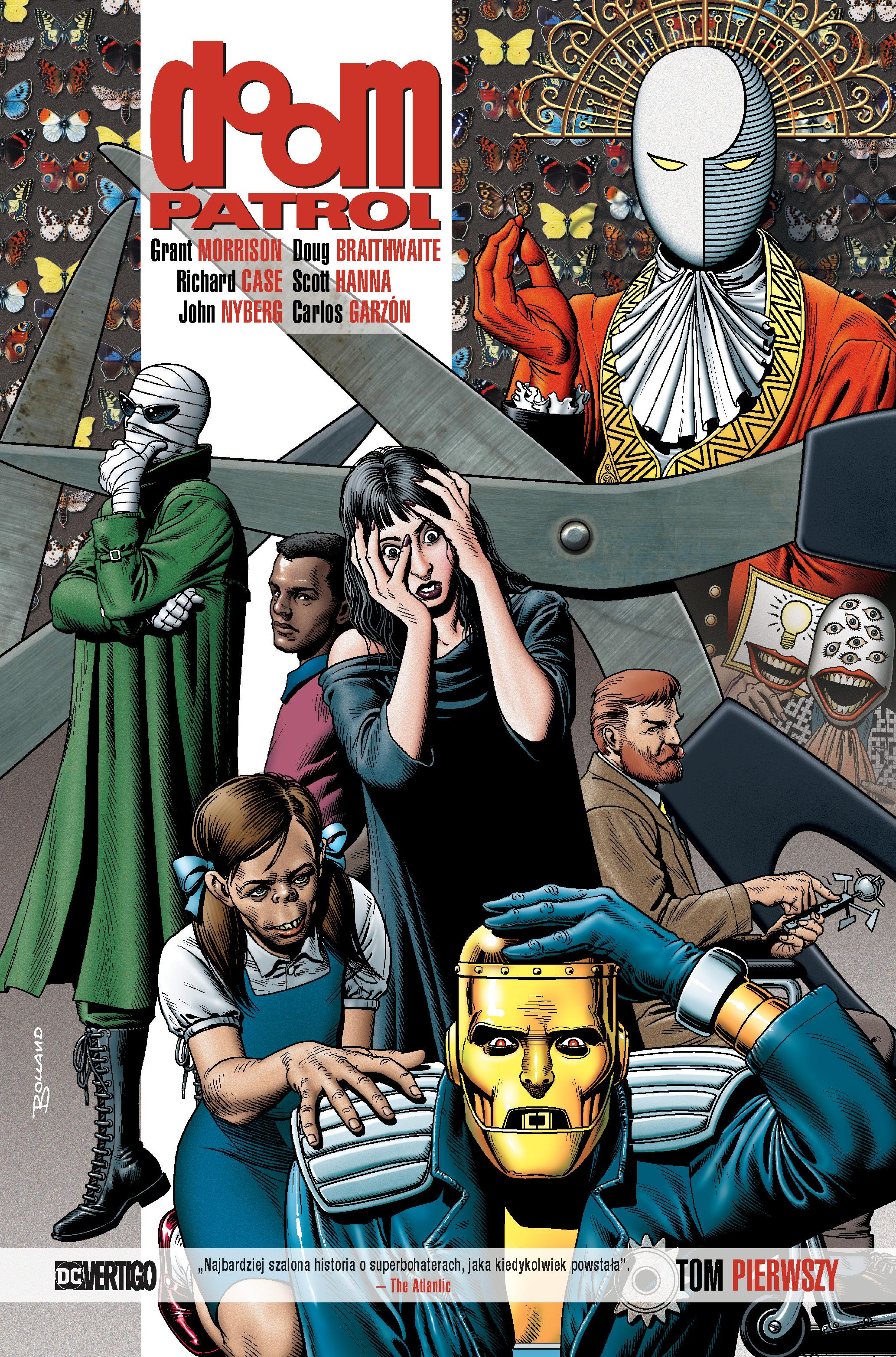 Najdziwniejsi Bohaterowie Świata zebrani do jedynej w swoim rodzaju grupy zwanej Doom Patrol, porzucając przy okazji wszystkie pozory normalności. Co prawda są obdarzeni supermocami, a ich przeciwnicy dążą do dominacji nad światem jednak na tym kończy się wszystko, co konwencjonalne. Ci odmieńcy i społeczne wyrzutki muszą jednak stawić czoło zagrożeniom o naturze tak zadziwiającej, że sama rzeczywistość grozi zawaleniem. Dla Doom Patrolu to jednak codzienność. Doom Patrol powstał pierwotnie w latach sześćdziesiątych XX wieku i był dziełem wizjonerskiego duetu scenarzysty Arnolda Drake’a i rysownika Bruna Premianiego. Odrodzenie nastąpiło w kolejnym pokoleniu dzięki Grantowi Morrisonowi, szkockiemu scenarzyście obdarzonym wyjątkową wyobraźnią. Niniejsze trzytomowe wydanie obejmuje wszystkie zeszyty serii Doom Patrol, ze scenariuszem autorstwa szkockiego autora. Komiks dla dorosłych.