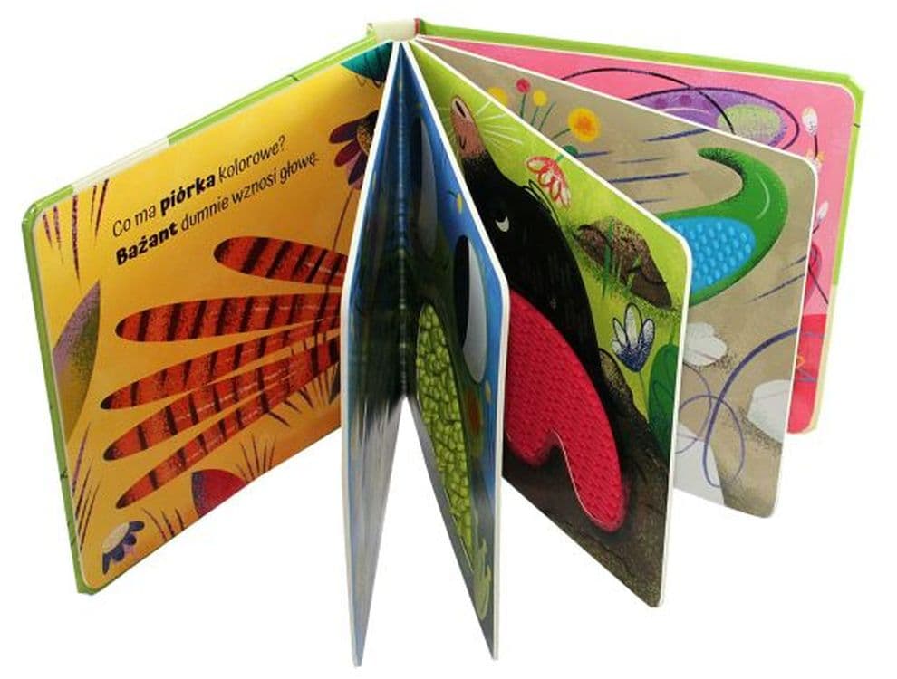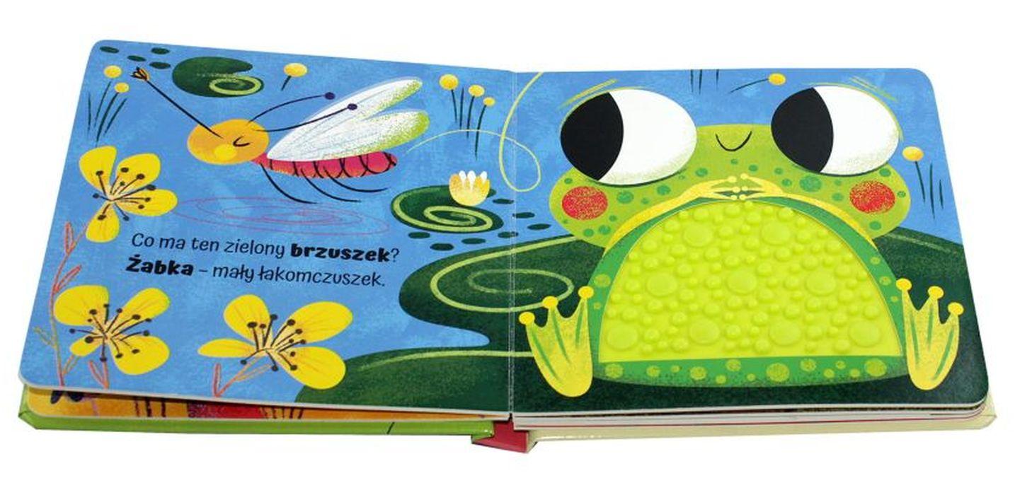 Fantastyczna książeczka DOTYKOWA dla MALUSZKA – na każdej rozkładówce SILIKONOWA FORMA. Różne KOLORY i FAKTURY zapewniają niezapomniane WRAŻENIA SENSORYCZNE. Przedstawia wesołe zwierzątka mieszające na ŁĄCE. SYMPATYCZNE ILUSTRACJE i PROSTE ZAGADKI angażują do zabawy. Urocza książeczka dla CIEKAWYCH ŚWIATA malców. Dzięki wypukłym formom o różnych fakturach dziecko może POGŁASKAĆ łąkowe zwierzątka. Z pewnością chętnie sprawdzi, jakie w DOTYKU są PIÓRKA BAŻANTA czy BRZUSZEK ŻABKI. Książka • zapewnia wszechstronny ROZWÓJ SENSORYCZNY • aktywizuje zmysły WZROKU i DOTYKU • pobudza WYOBRAŹNIĘ • rozwija CIEKAWOŚĆ ŚWIATA • uczy rozróżniania KOLORÓW • wzbogaca SŁOWNICTWO Fantastyczna książeczka DOTYKOWA dla MALUSZKA – na każdej rozkładówce SILIKONOWA FORMA. Różne KOLORY i FAKTURY zapewniają niezapomniane WRAŻENIA SENSORYCZNE. Przedstawia wesołe zwierzątka mieszające w LESIE. SYMPATYCZNE ILUSTRACJE i PROSTE ZAGADKI angażują do zabawy.