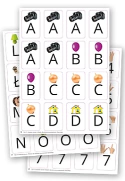 Zestaw kartoników z literami i obrazkami, których nazwy rozpoczynają się daną głoską, a także z liczbami przedstawionymi za pomocą palców dłoni i cyfr. Klaser zamykany na rzep ułatwi przechowywanie elementów.