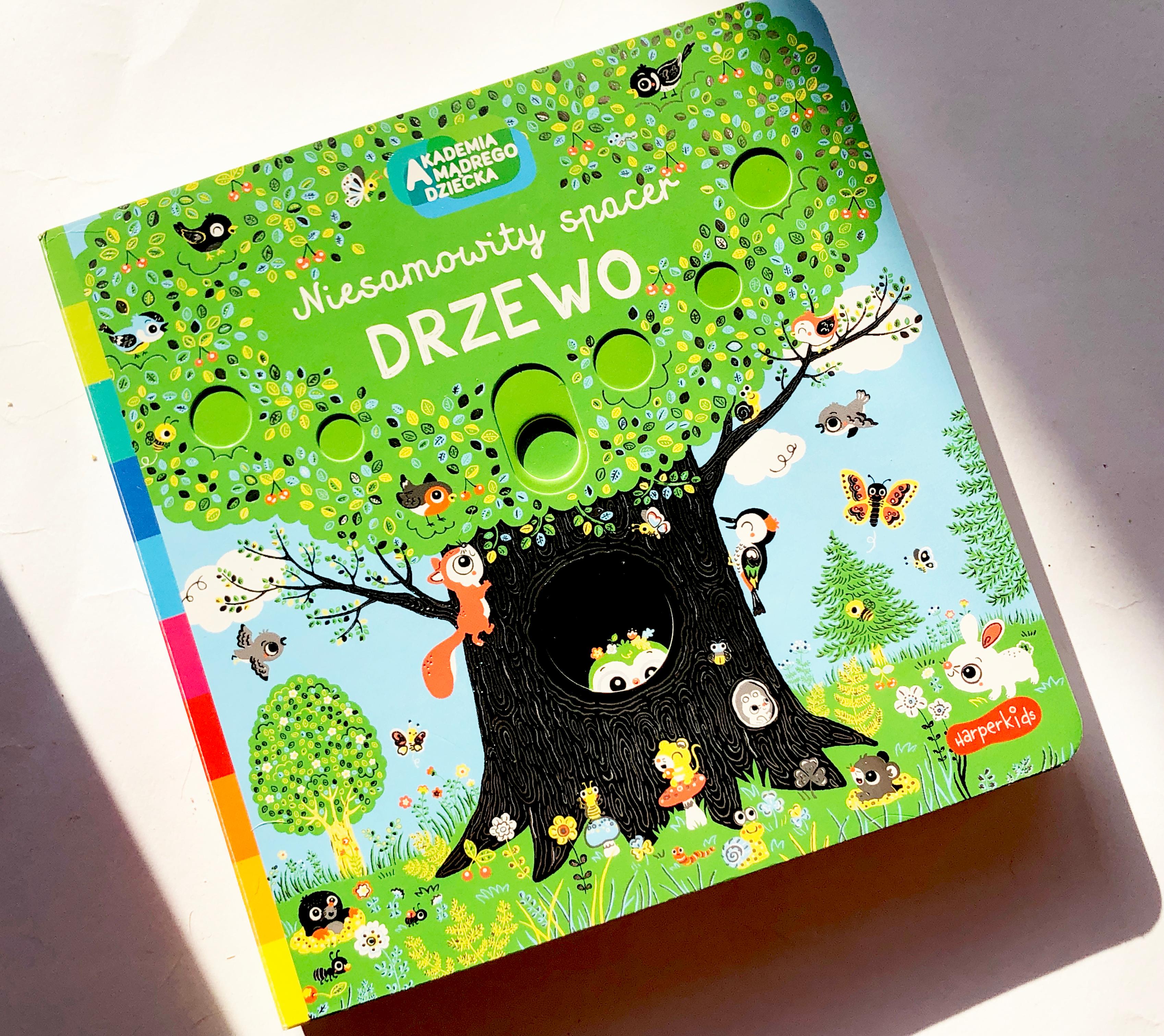 Nowy tytuł Drzewo z serii Niesamowity spacer to kolejna książeczka dla najmłodszych z ruchomymi elementami oraz srebrnymi tłoczeniami. Kontrastowa kolorystyka oraz uproszczona forma ułatwiają zapamiętywanie poszczególnych słówek, poprzez skojarzenie ich z otaczającą dzieci rzeczywistością. Grube, solidne strony zapewnią wytrzymałość oraz długie użytkowanie, wspomagając rozwój manualny małych rączek.