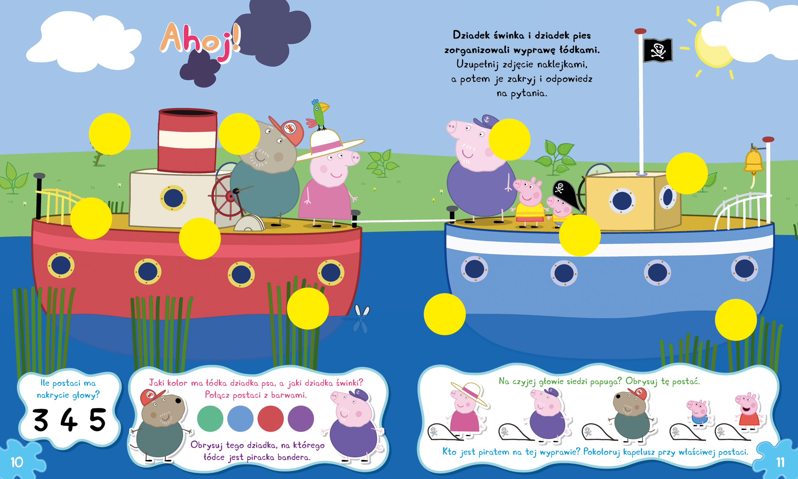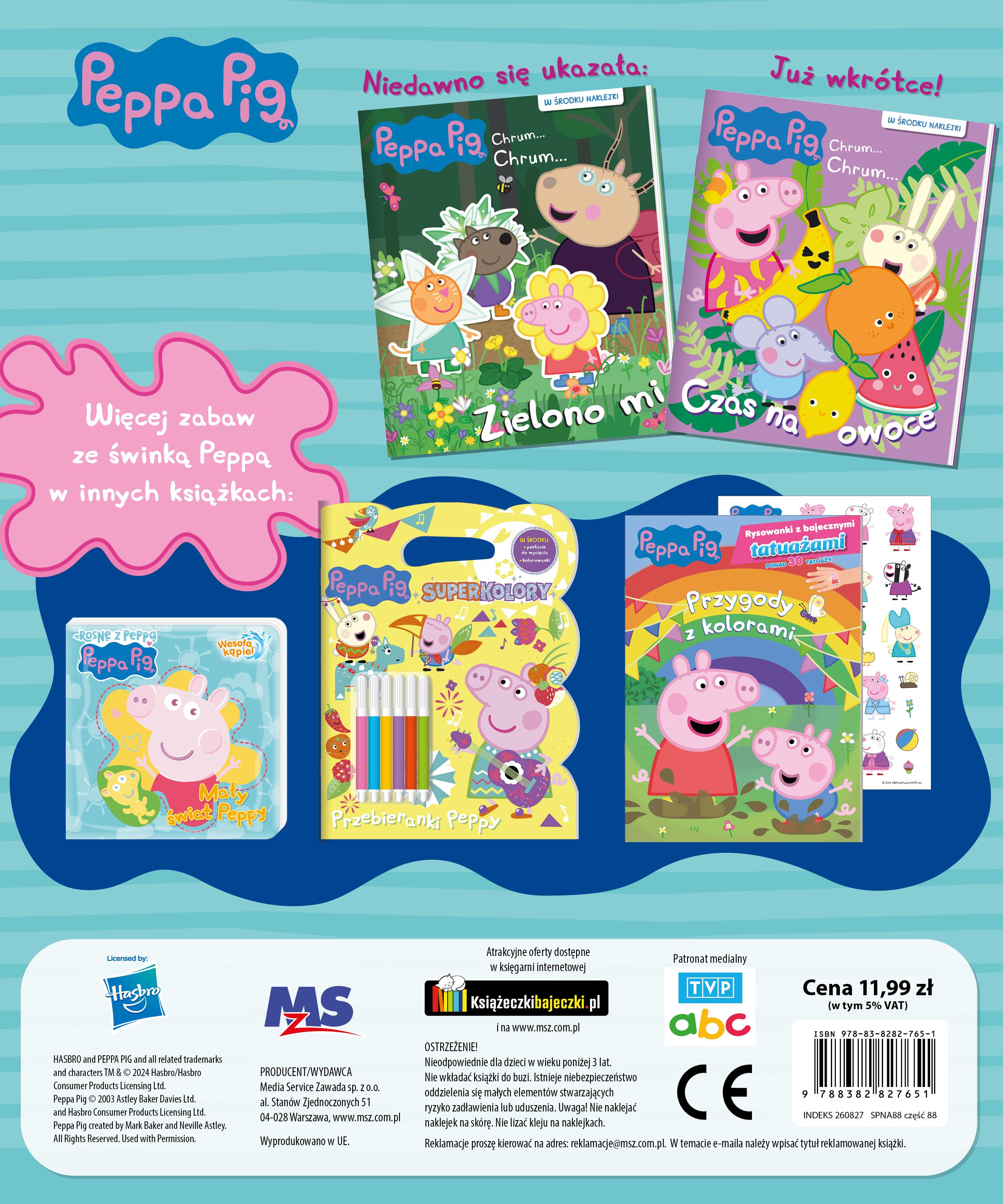 Książeczka to propozycja zabawy ze świnką Peppą, jej rodzinką i przyjaciółmi. Książka zawiera różnorodne aktywności, zadania, kolorowanki, które mają na celu pobudzanie dziecięcej wyobraźni, rozwijanie spostrzegawczości oraz umiejętności plastycznych. W środku także naklejki, dzięki którym zabawa będzie jeszcze ciekawsza.