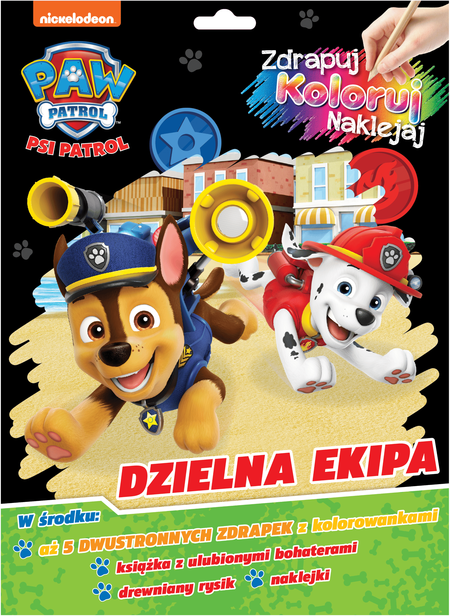 Dzielna ekipa. Psi Patrol. Zdrapuj, koloruj, naklejaj Opracowanie Zbiorowe Książka